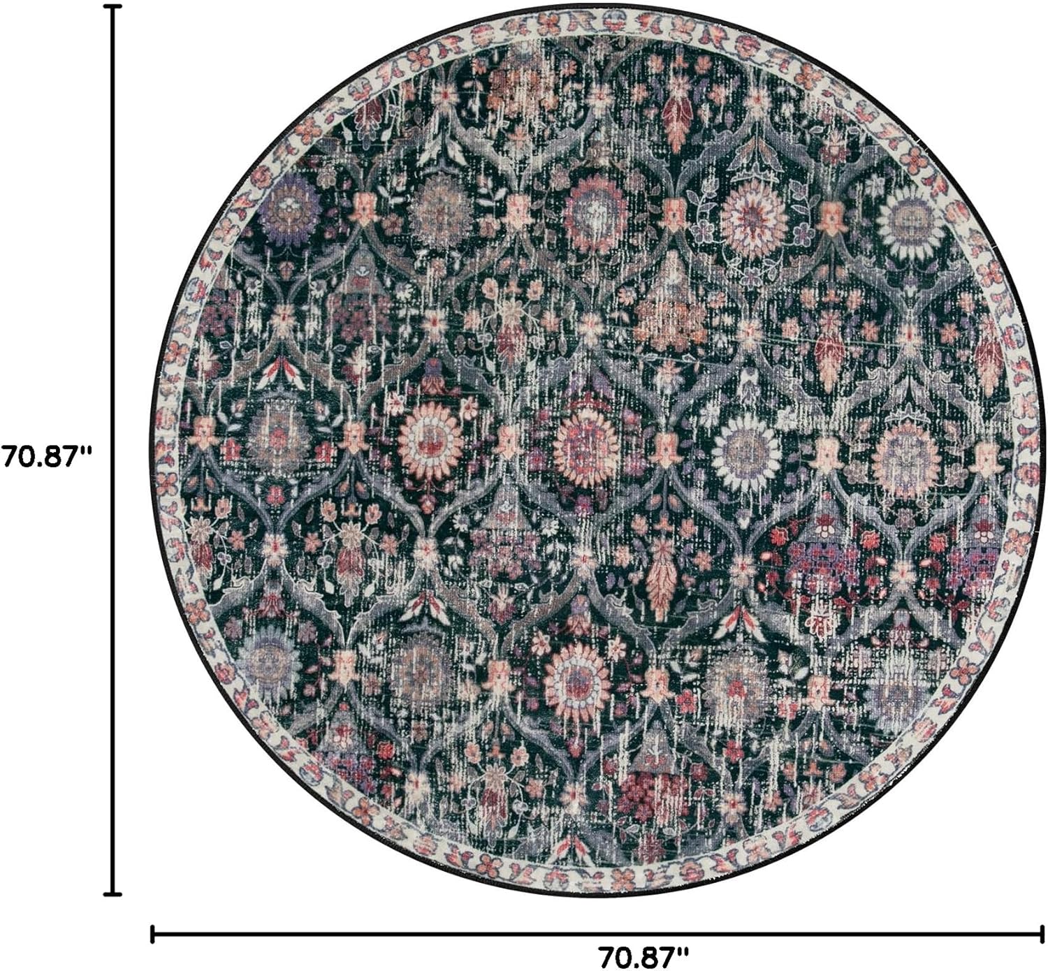 Lahome Moroccan Trellis Washable Round Area Rug, Soft Round Rugs 6ft Ultra-Thin Non-Slip, Vintage Large Circle Carpet for Bedroom Living Room Kitchen Nursery, Black/Multi