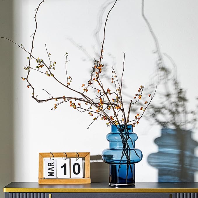 - 🌷[Product List] Simple straight transparent blue bubble cylindrical vase size: 6 inches in diameter * 9.8 inches in height, the glass will never fade, because of the light source, there may be a slight color difference between the actual object and the picture, the actual object will be transparent blue, please understand, do not include flowers