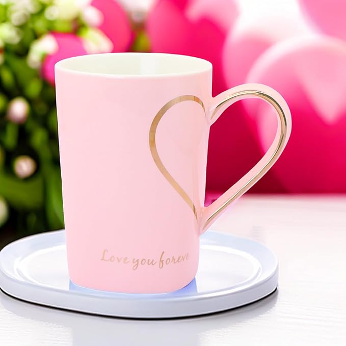 12oz Ceramic Coffee Mug Pink Coffee Mug Heart Shaped Pattern Design Heart Gift for Mother's Day Women Mom
