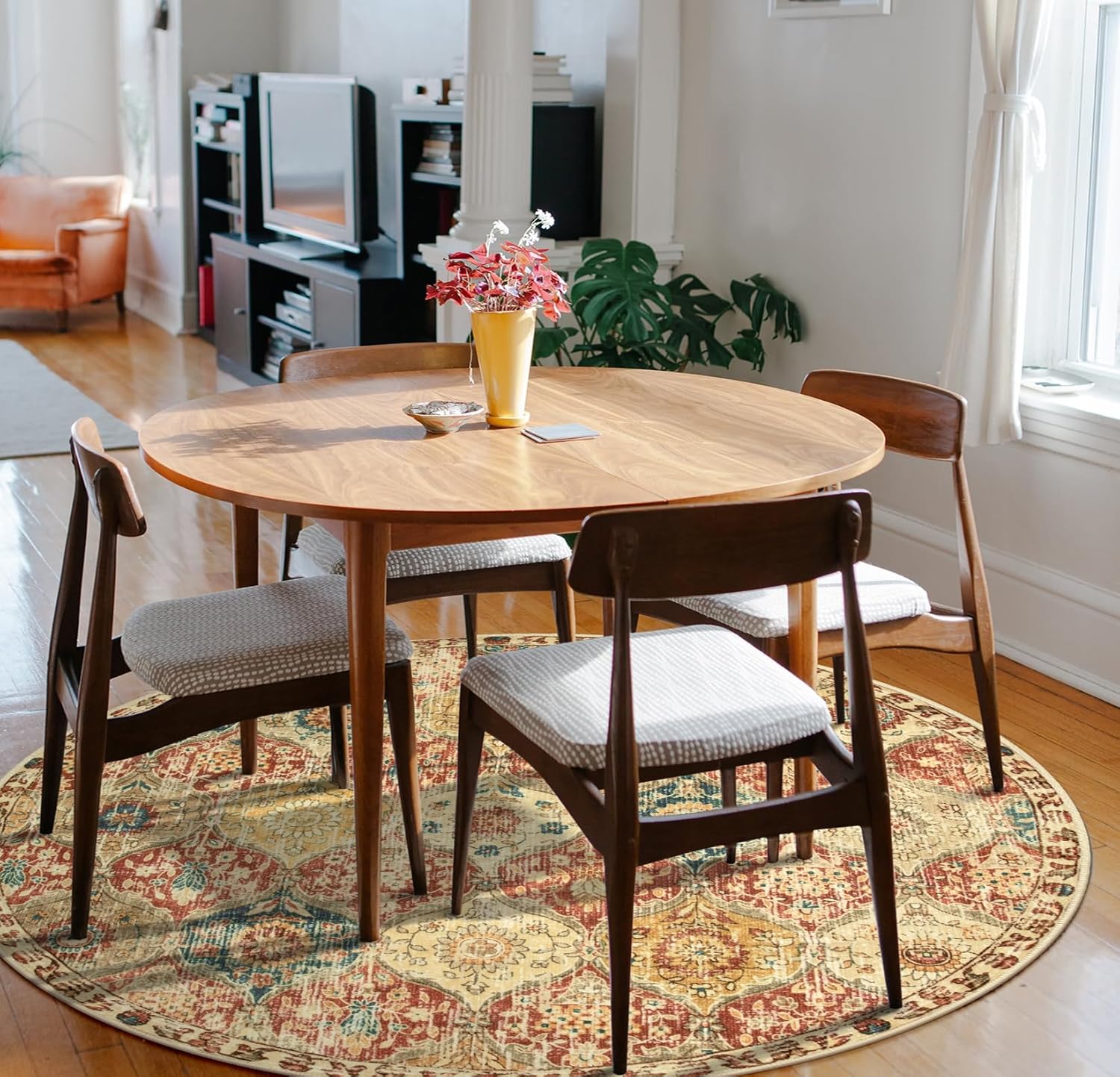 Lahome Moroccan Trellis Washable Round Area Rug, Round Rug 5ft Soft Non-Slip, Non-Shedding Distressed Circle Carpet for Bedroom Living Room Bathroom Nursery Kitchen, Red/Orange