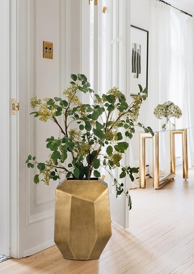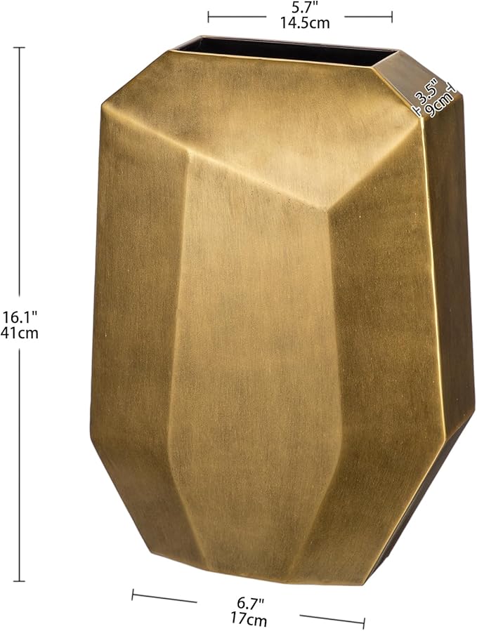 16"" Tall Geometric Vases, Home Décor Gold Modern Rectangular Vases with Angular Front and Back, Contemporary Industrial Metal Vases for Office Home Resto Café Decoration, Bronze