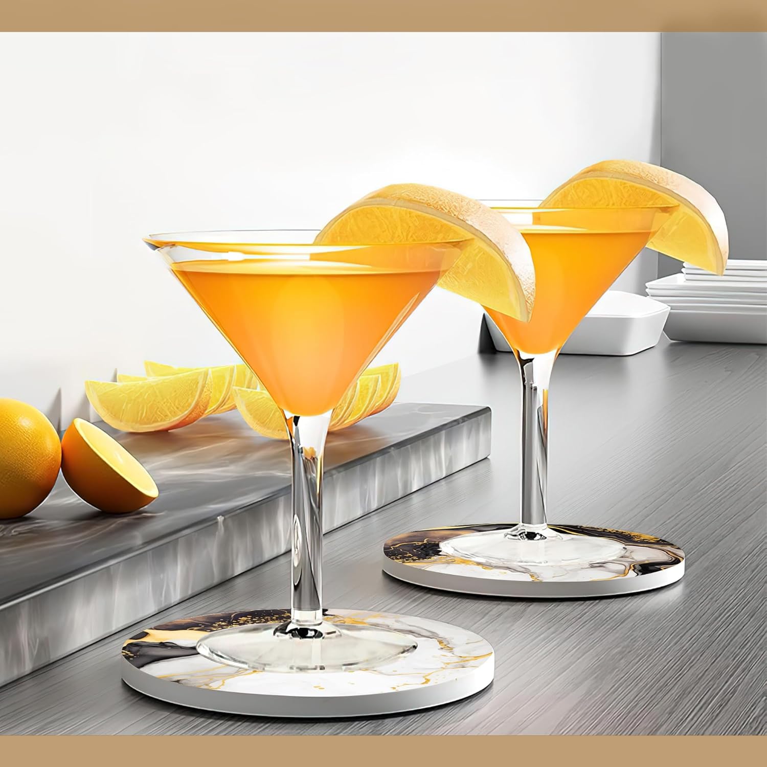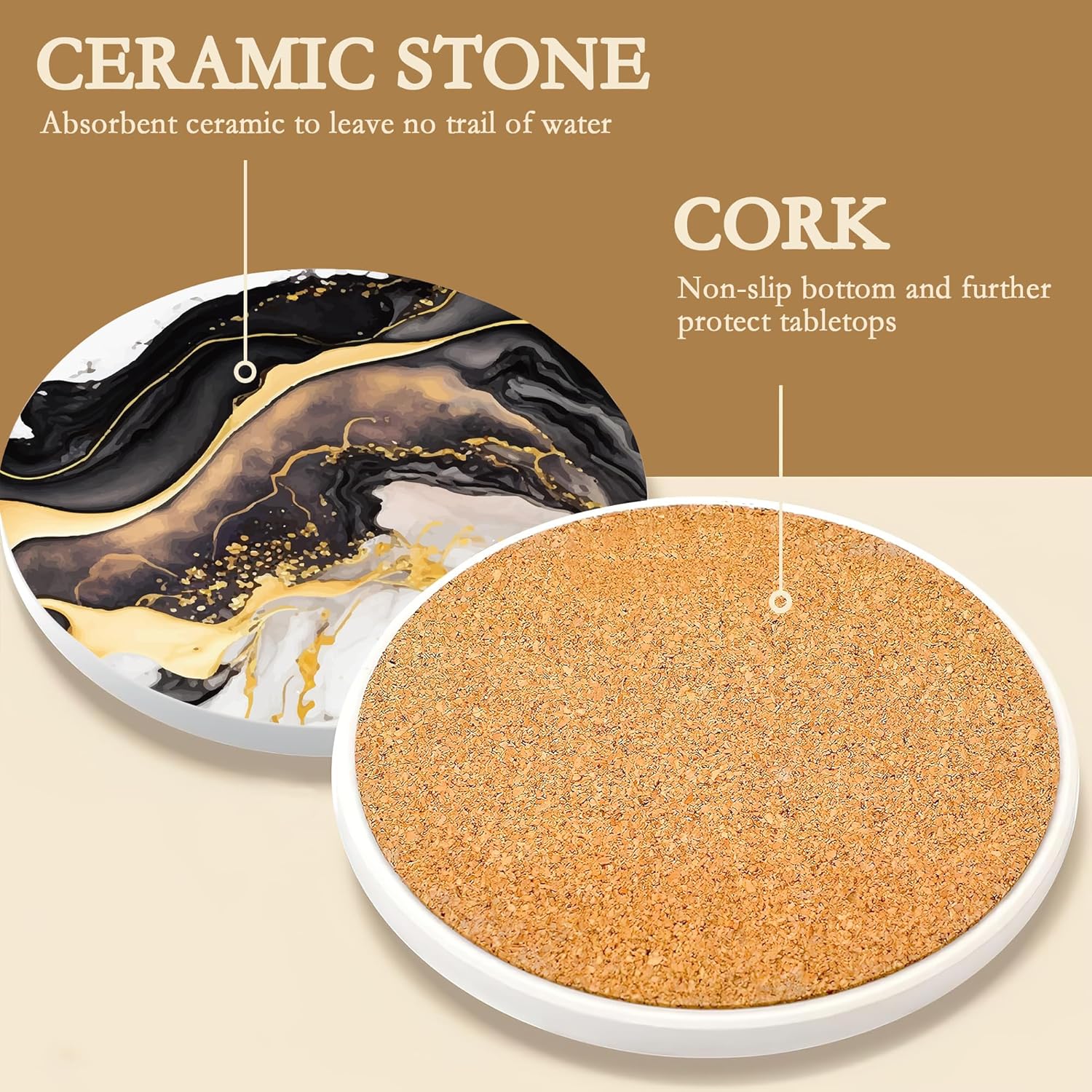 Black Gold Marble Ceramic Coaster Set of 6, Water-Absorbent Beverage Pads for Dining Table Decor & Glass Protection