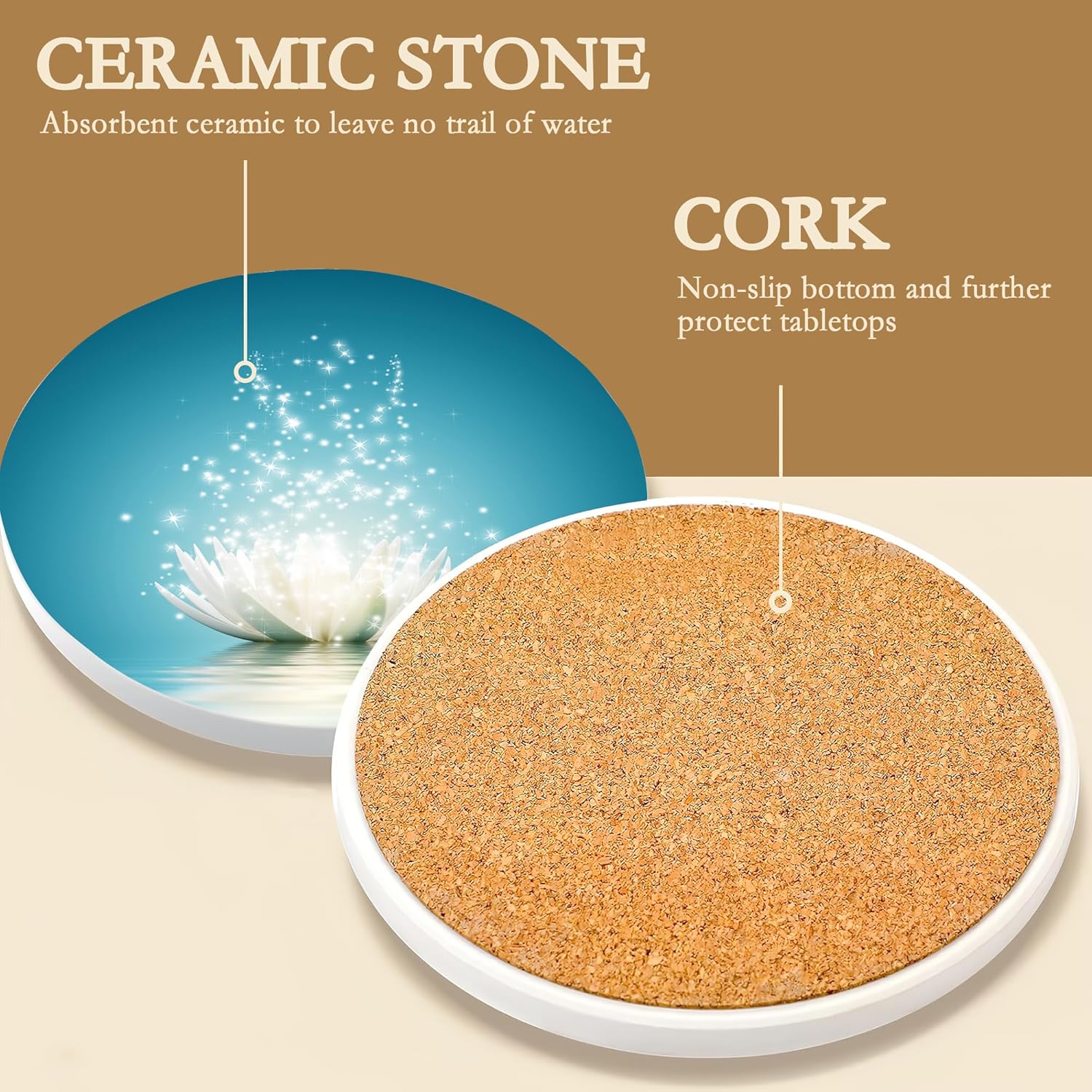 - QUICKLY ABSORBENT:Made of ceramic, the coaster absorbs water quickly. No need to worry about watermarks or water stains left by your drinks. Coasters made of ceramic will not stick to the bottom of the glass. Easy to pick up the glass.