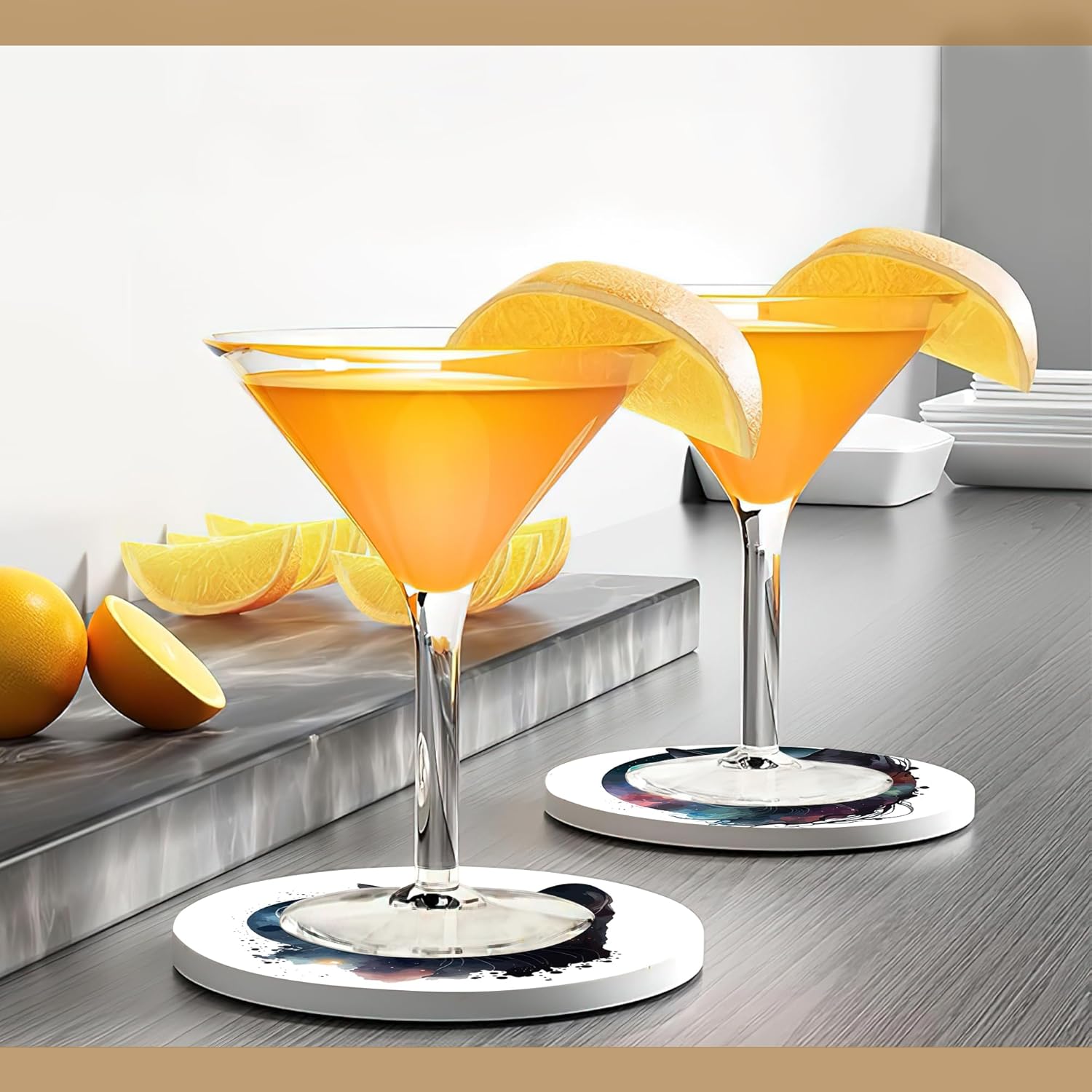 - QUICKLY ABSORBENT:Made of ceramic, the coaster absorbs water quickly. No need to worry about watermarks or water stains left by your drinks. Coasters made of ceramic will not stick to the bottom of the glass. Easy to pick up the glass.