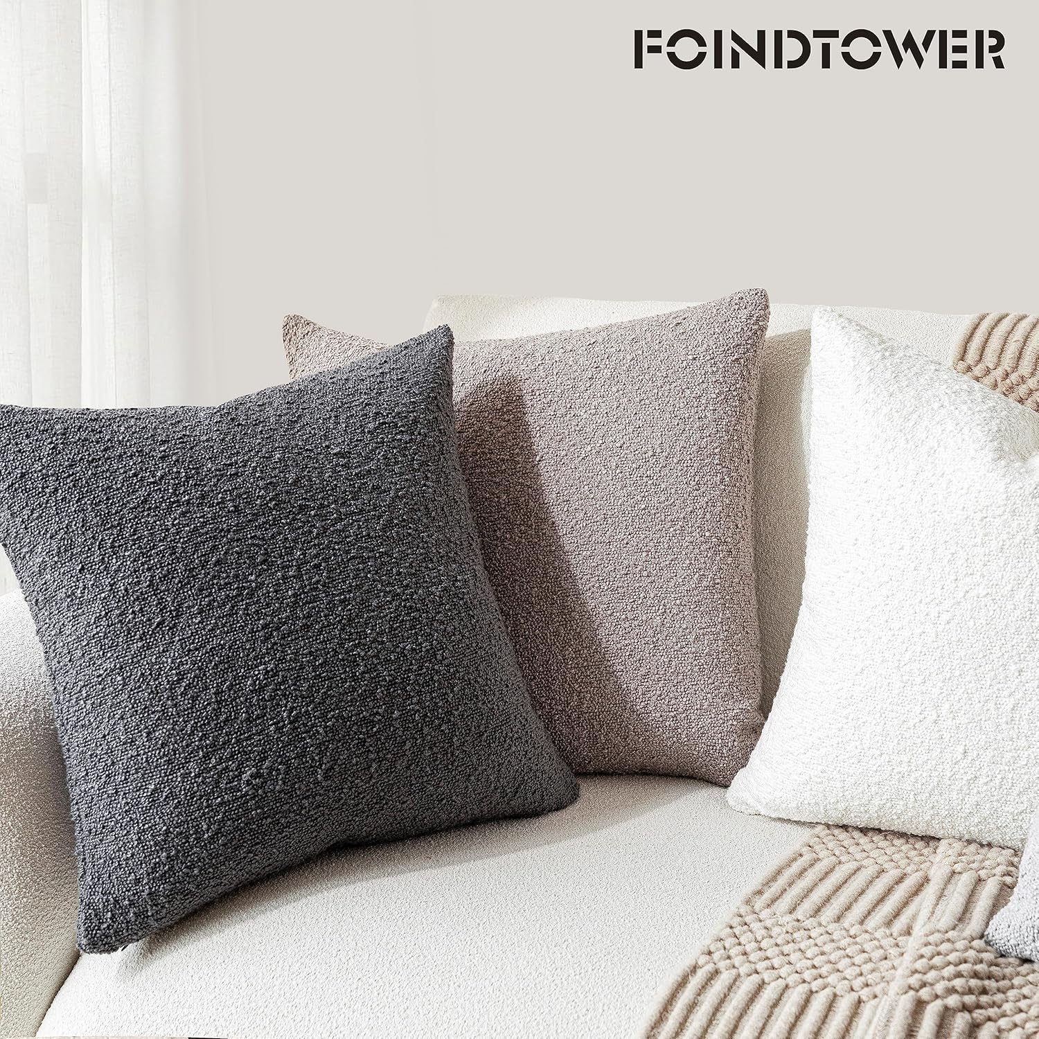 Foindtower Decorative Textured Boucle Throw Pillow Covers Accent Solid Pillow Cases Neutral Soft Cozy Couch Cushion Case for Chair Sofa Bedroom Living Room Home Decor 22 x 22 Inch,Neutral Grey