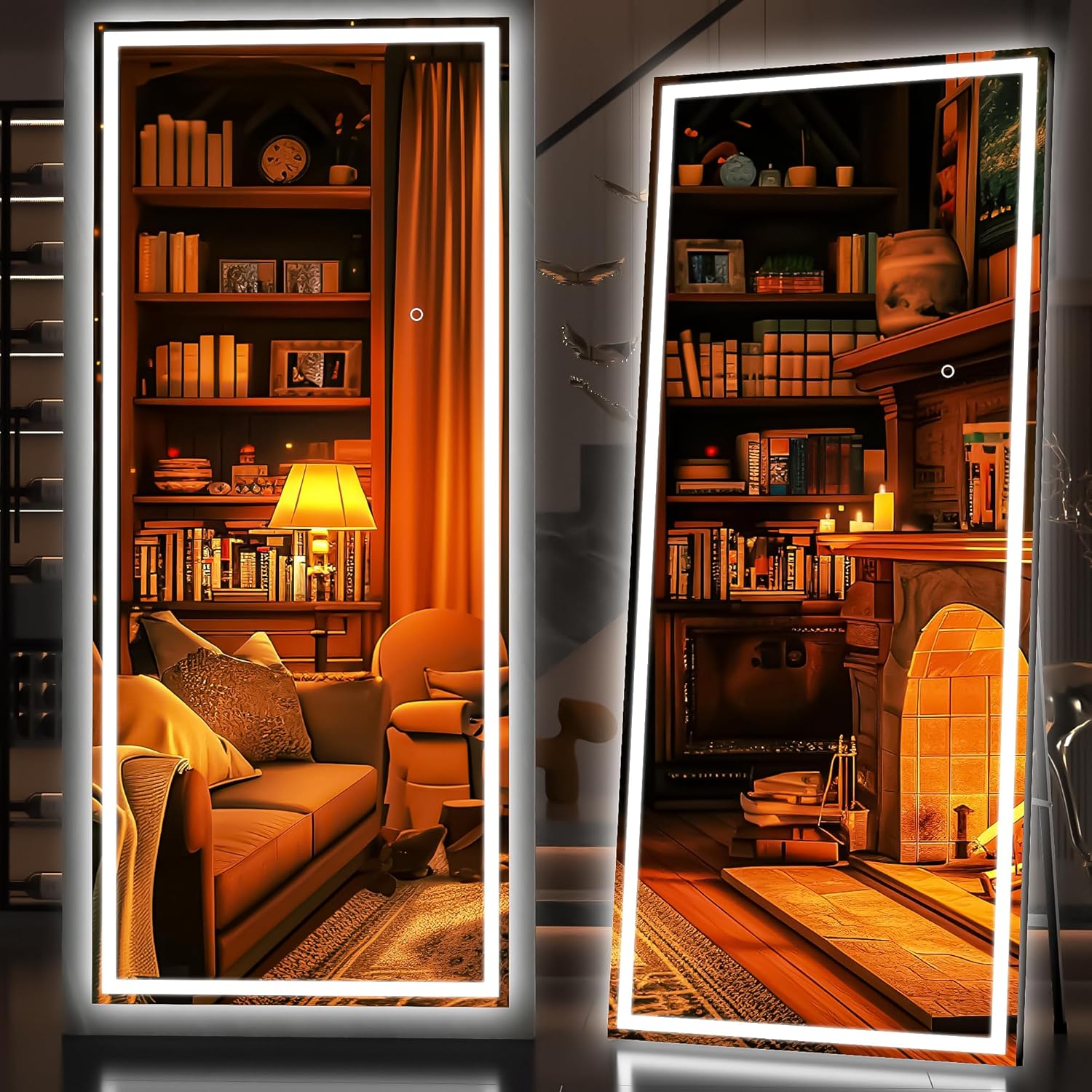 - 【Dimmable & 3 Color Temperature】This lighted full length mirror is multifunctional. You can press the button to change the color temperatures: Warm(3000K), natural (4000K) and white(6000K). You can also dim the brightness to your comfortable level. All these will be easily controlled by the touch button.