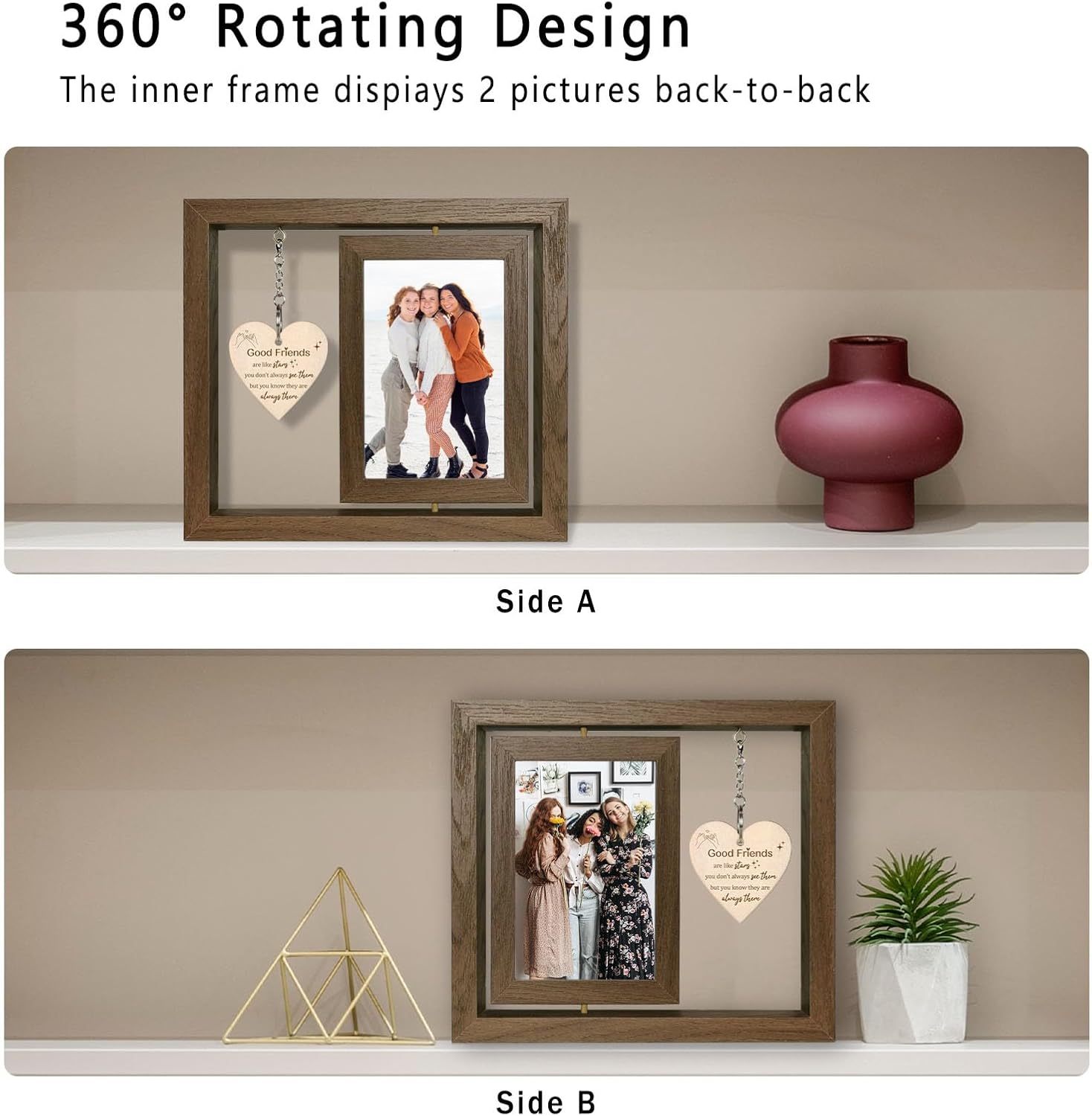 - Sturdy Wood Material: 360 Degrees rotating picture frames are made of lightweight wood with a unique design vintage wood texture finish and real glass cover, making quality best friend gifts for women