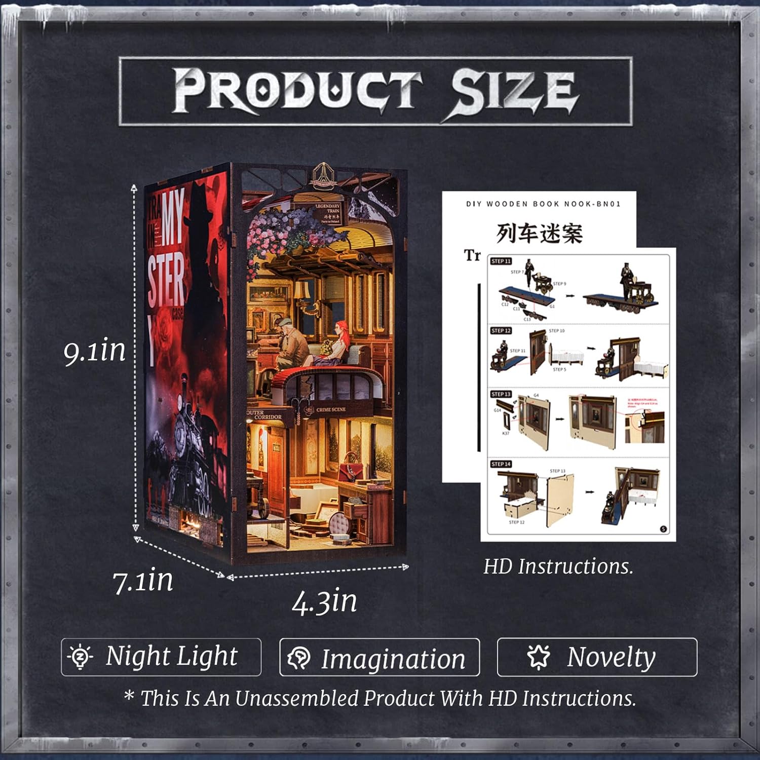Cutefun Book Nook Kit, DIY Miniature House Kit for Teens, Book Nook Kits for Adults, Wooden Dollhouse for Bookshelf Decor, Model Building Creativity Gifts for Family & Friends (Train Mystery Case)