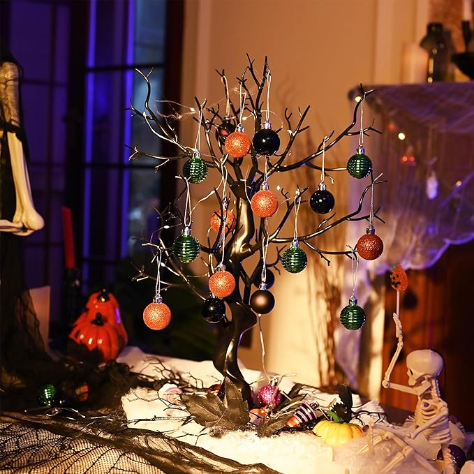 - 【Exquisite Craftsmanship】Our halloween tree ornaments include 3 special finishes such as shiny, matte, and glitter. Additionally, the set includes one ribbed molded ball. The multi-finish and novelty shape ornaments meet all your favorite tree ornament needs, and the molding seam is almost invisible, making them look exquisite