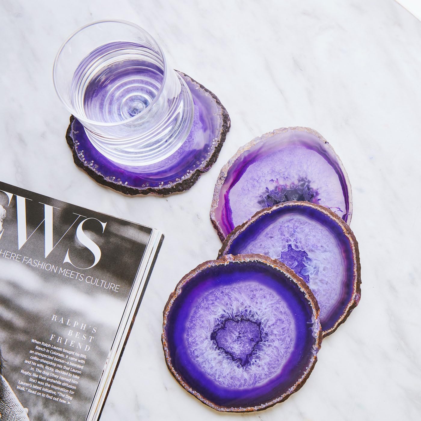 - Exquisite Gift: The Natural Agate Coaster 4 Pc from Brazil. Set makes for an exquisite gift choice. Ideal for birthdays, anniversaries, housewarmings, or holidays, these hand-crafted coasters spark engaging conversations with their appealing colors, patterns, and transparencies under certain lighting.