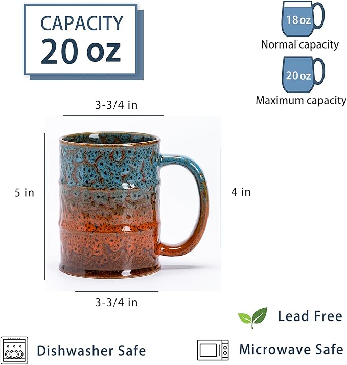 - LARGE CAPACITY: Our large ceramic coffee mug has a prefect capacity with 20 oz, suitable for latte, cappuccino, hot cocoa ,hot and cold drinks. The design of the bottom is very stable, and the big handle is so easy and comfortable to hold