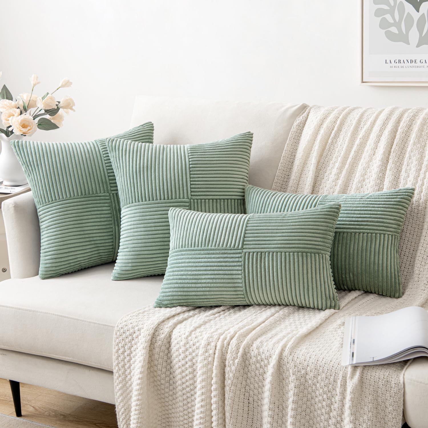 MIULEE 24x24 inch Euro Greyish Green Corduroy Pillow Covers Pack of 2 Boho Decorative Spliced Throw Pillow Covers Soft Solid Couch Pillowcases Cross Patchwork Textured Covers for Living Room Bed Sofa