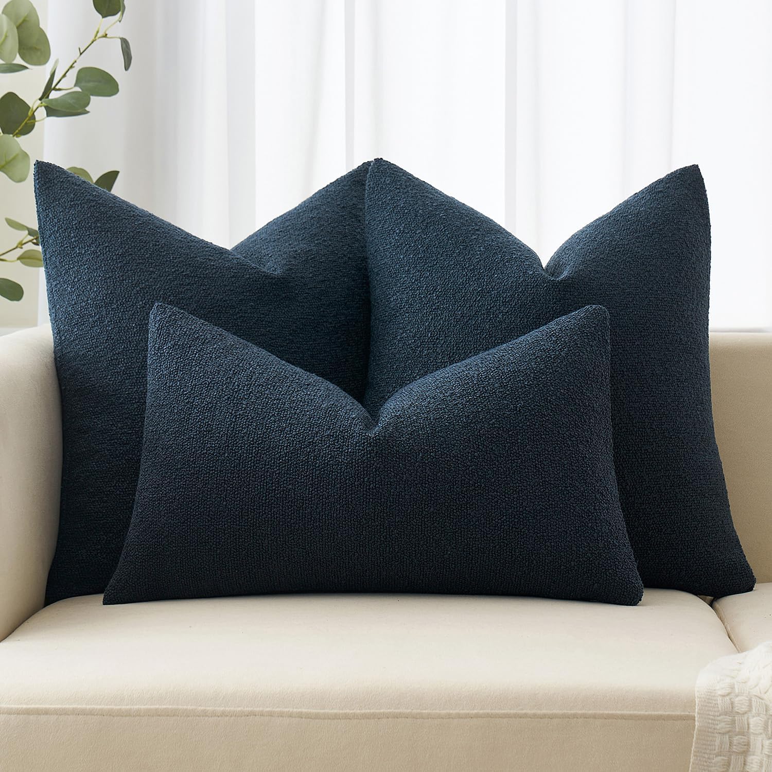 MIULEE 18x18 Inch Decorative Pillow Covers for Couch Bed Set of 2 Textured Boucle Neutral Winter Throw Pillows Navy Blue Accent Solid Cushion Pillowcases Sofa Livingroom Home Decor