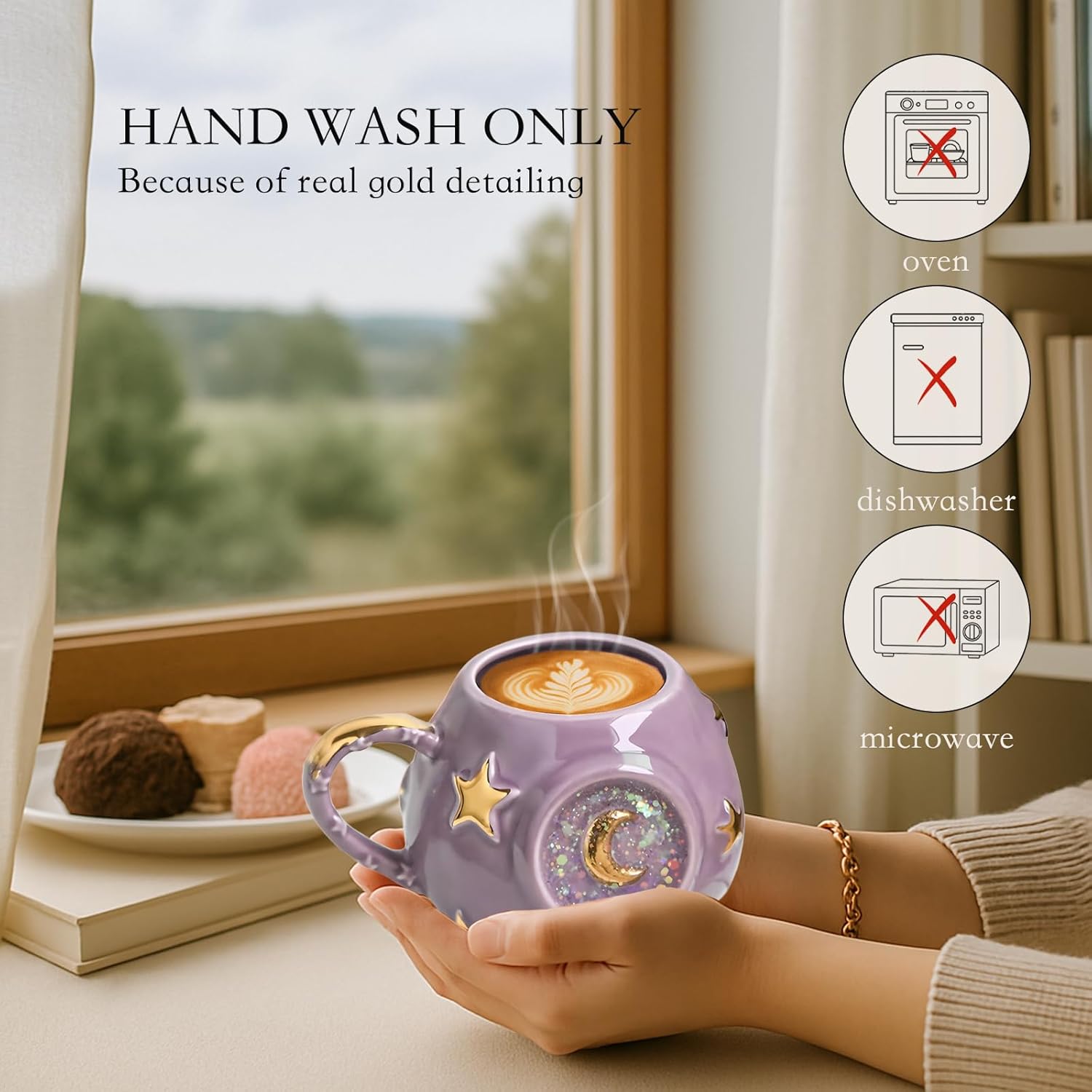 - 【High Quality and Gentle Care】Made from lead-free pottery with real gold details, our cosmic ceramic cups are safe for drinking, but not for microwave, oven, or dishwasher. Please hand wash only. Whether you're drawn to the charm of tazas de café bonitas or the mystery of a starry sky mug, this is a constellation coffee mug meant to be