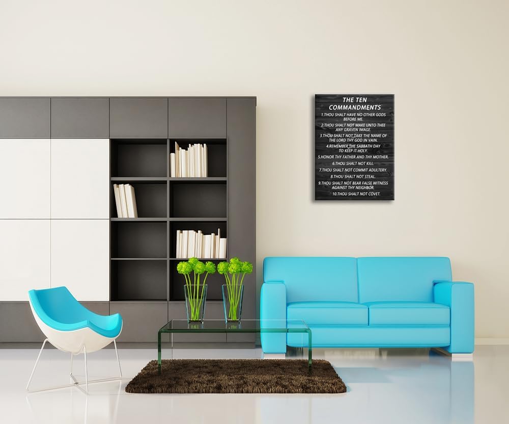 Inspirational Canvas Wall Art The Ten Commandments Quote Motivational Christian Religion Poster Inspirational Canvas Painting Prints Artwork Wall Pictures Office Home Wall Decor Framed [30''Wx 40''H]
