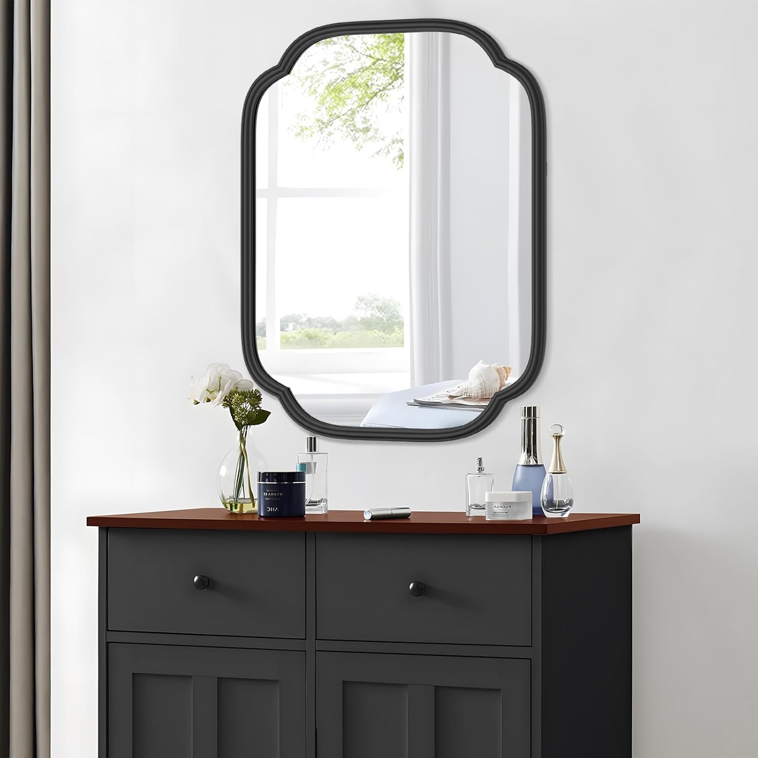 Black Bathroom Mirror for Wall, 18" x 24" Rectangular Wall Mirror for Bathroom Metal Frame Farmhouse Rounded Corner Wall Mirror (Horizontal/Vertical)