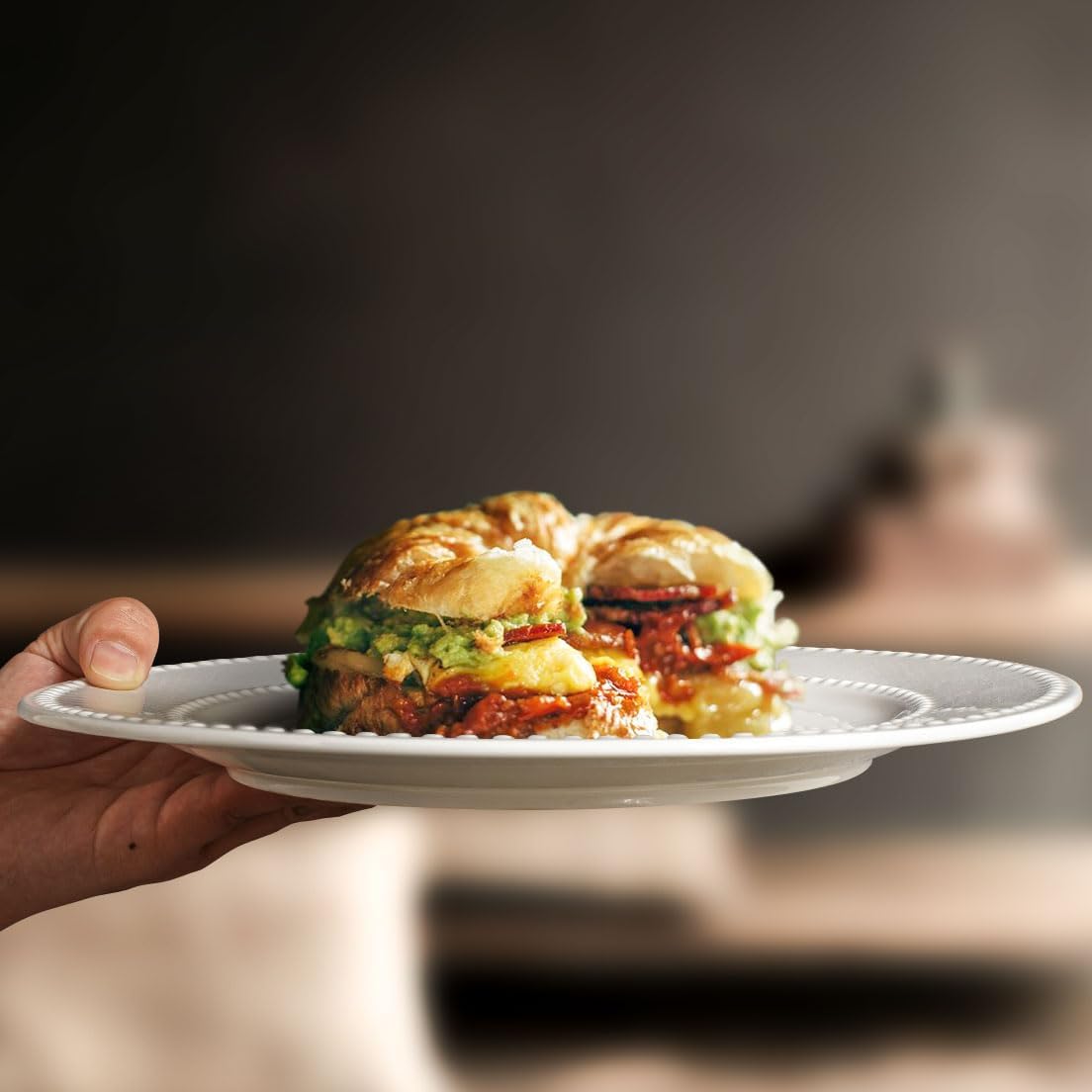 - 【Embossed Dots Wide Rim Design】A string of embossed dots decorates the wide rim of this dinner plates with a deep shape that accentuate the foods more attractive in sturdy premium ceramic. We love the fine bright appeal of this ceramic plates facet and its beautiful rims that gives you a nice grip for every meal.