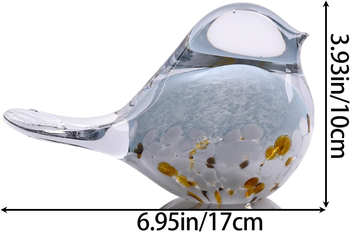 - MATERIAL AND SIZE: The glass bird statue is hand blown using high temperature glass firing. Each one is unique, odorless and harmless, permanent use for good memorial effect. Size: 6.7 inches long, 3.15 inches wide, 3.9 inches high