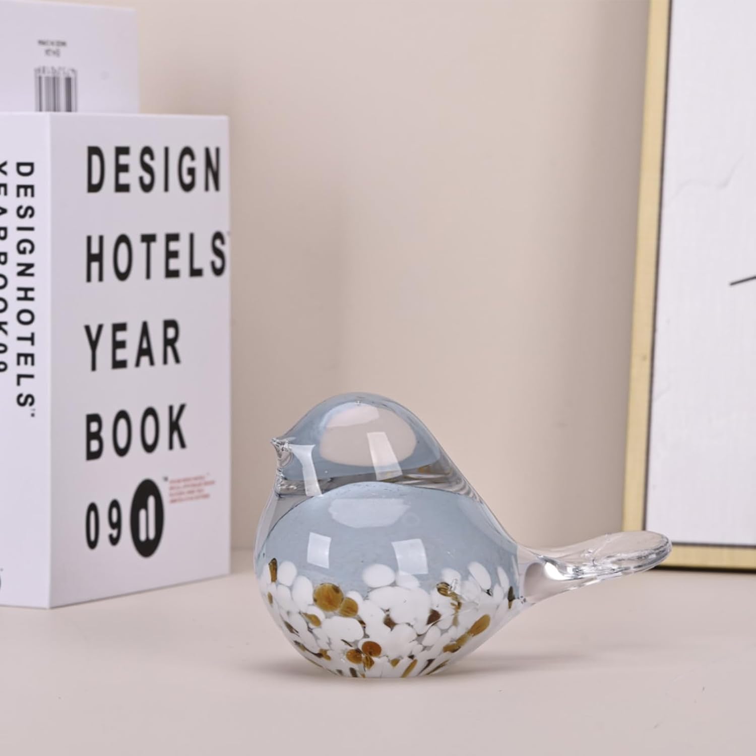 DOVDOV Hand Blown Glass Bird Statue Home Decor, Small Blue Glass Art Bird Sculpture for Office Desktop on Dresser entryway Decorative Ornament and Paperweight.