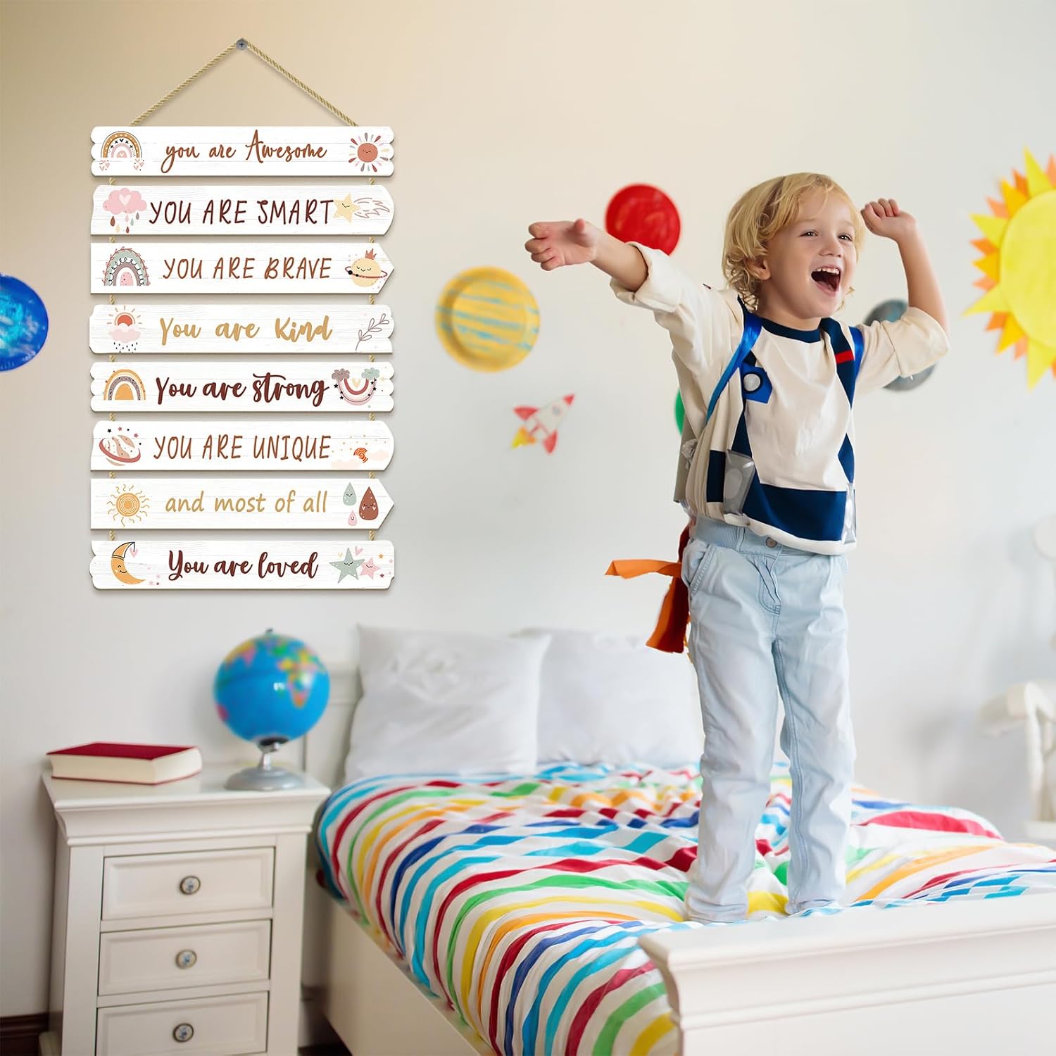 - BOHO KIDS ROOM DECOR - This bohe rainbow wall decor prints with inspirational sayings to Enhance children's self-confidence. Especially suitable for girls bedroom decor, pastel room decor, nursery room decor, playroom decor, little baby room decor, princess room decor unicorn room decor etc