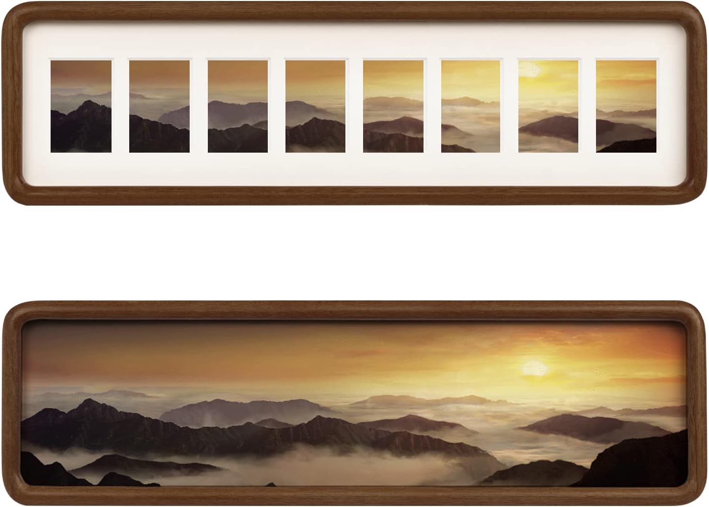 Hans 4""x16"" Collage Picture Frame with Single Mat, 1.5x2.5 Collage Matted Frame - Wall Mounting Horizontal or Vertical Display(8 Openings), Walnut