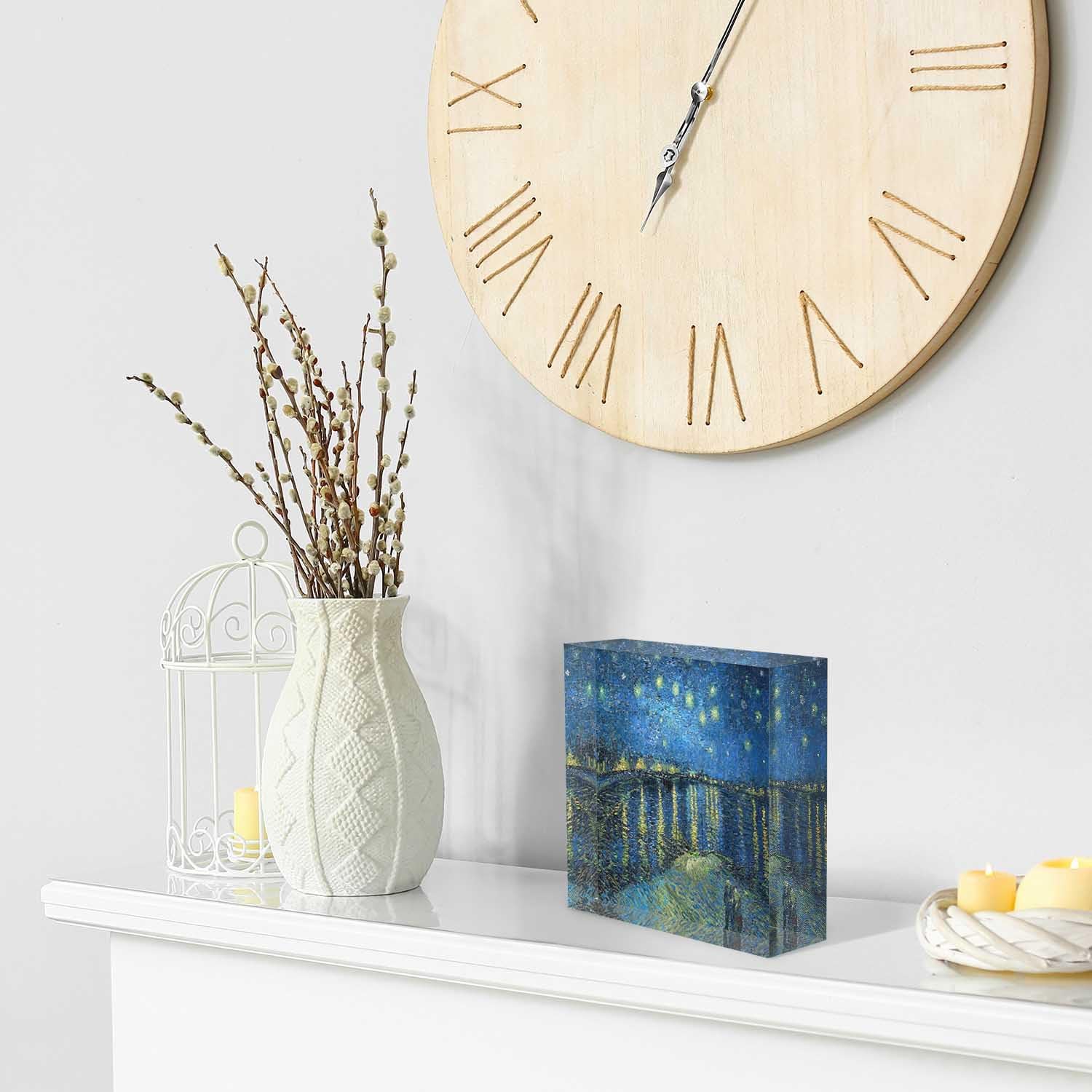 Clear Acrylic Decor Night View of The Rhone River Valentine's Day Present - Housewarming Presents - Presents for Mom,Sisters and Friends Positive Wall Plaque 4'' x 4''