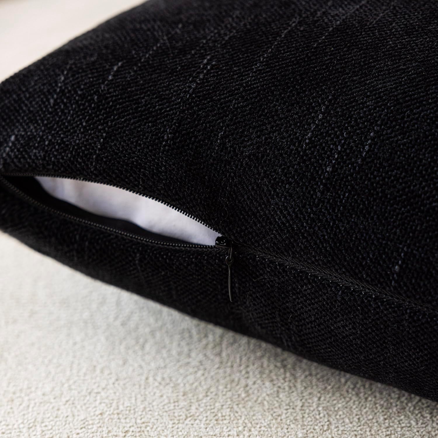Foindtower Pack of 2 Soft Textured Chenille Throw Decorative Pillow Covers Square Accent Solid Cushion Cover Cozy Farmhouse Pillow Case with Zipper for Couch Sofa Bedroom Living Room 22x22 Inch, Black