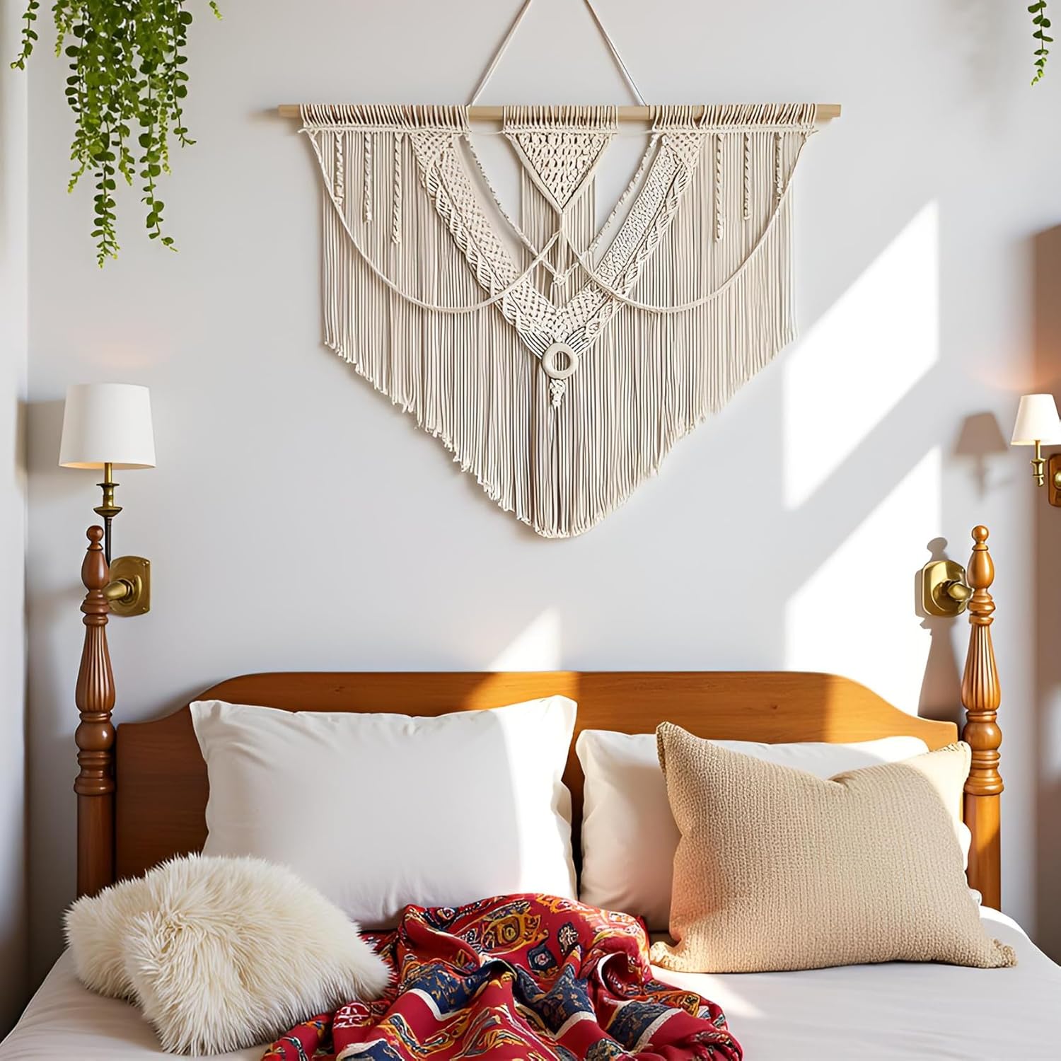 - Wide Range of Applications: Its symmetrical design is suitable for any interior decoration. This macrame headboard is the perfect statement piece to hang on the head of a bed or crib, sofa, mantelpiece, or desk .