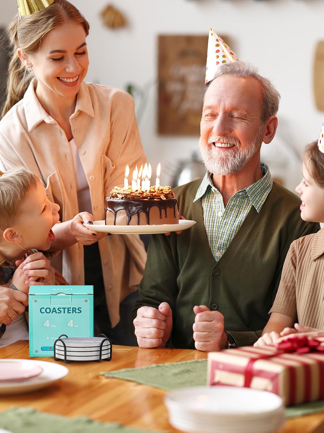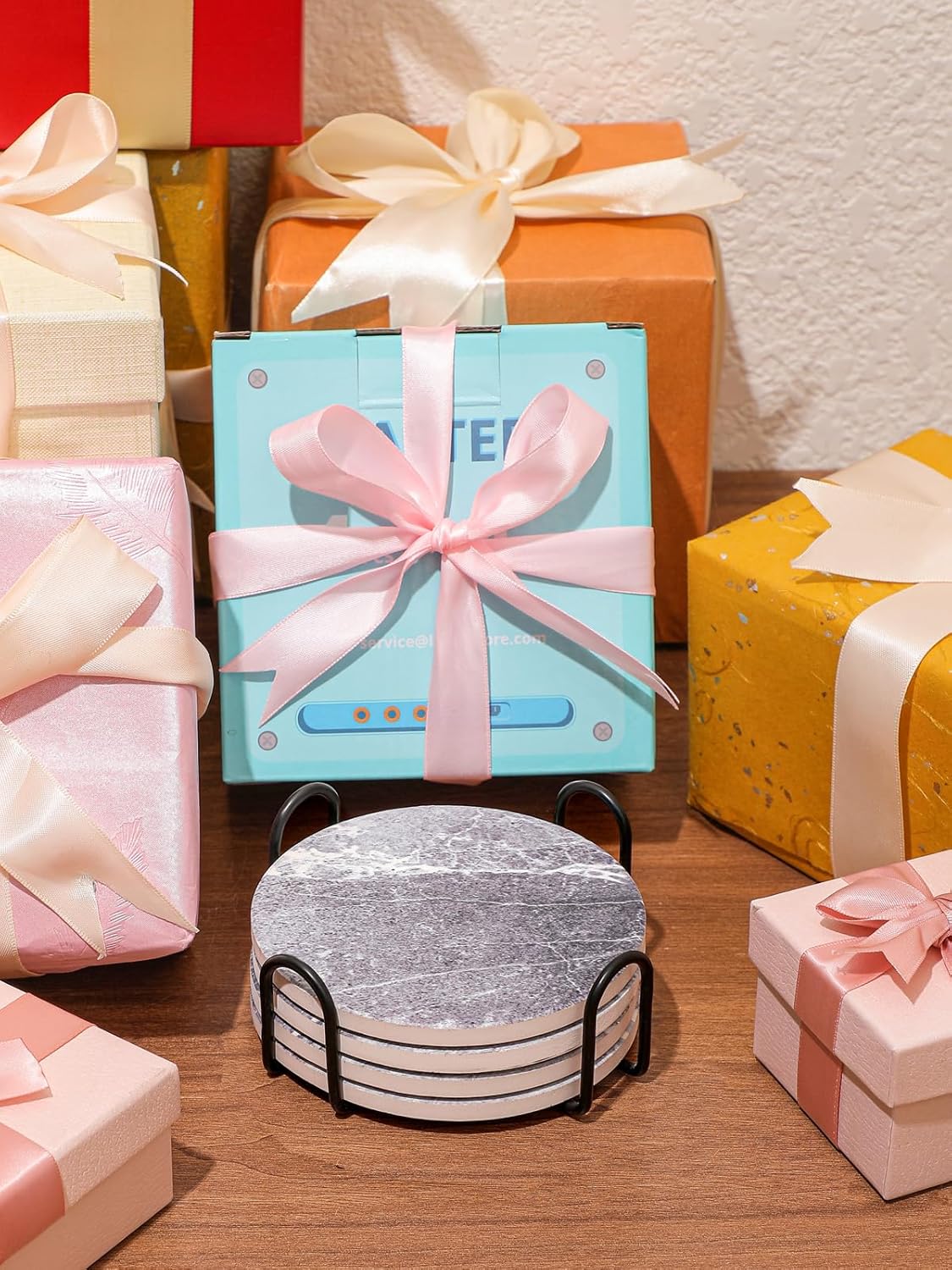 - Housewarming Gift: Coaster set with holder can be given as hostesses, Housewarming, Wedding, Thanksgiving, Dirty Santa, Christmas New Year gifts. Pretty cute gift box, well wrapped.