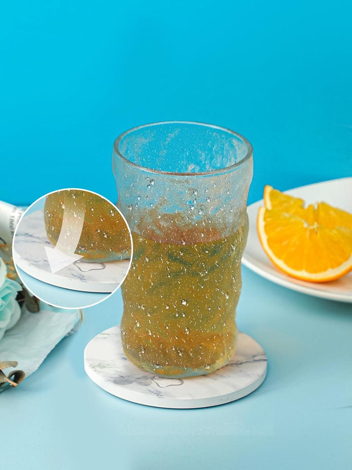 - Keep Tabletop Dry & Clean: Made from absorbent stone, the surface of the coasters absorbs water quickly within 5-10 seconds, and will not stick to the glass or wooden table