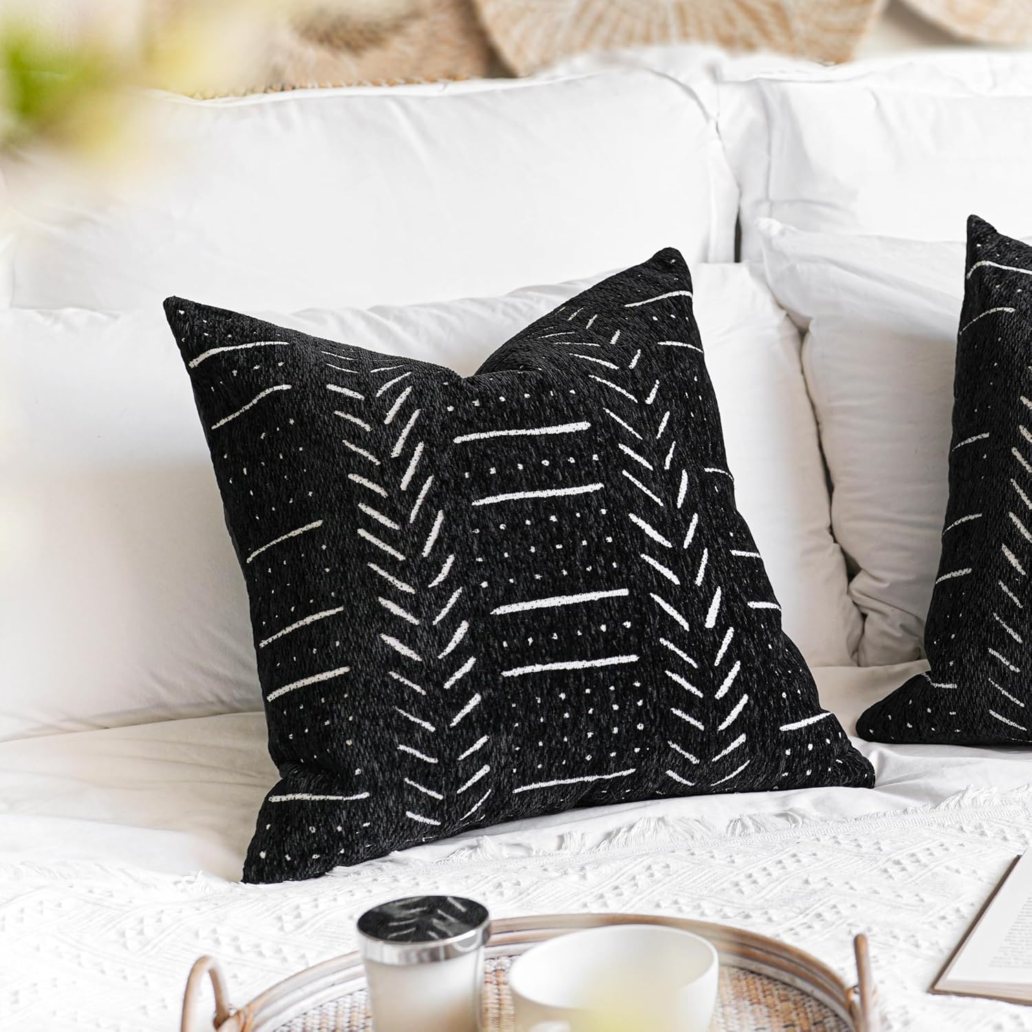 BlissBlush Black Decorative Throw Pillow Covers 22X22, Set of 2, Boho Farmhouse Cushion Cover, Cozy Soft Accent Pillowcase for Couch Sofa Bed Living Room Home Décor