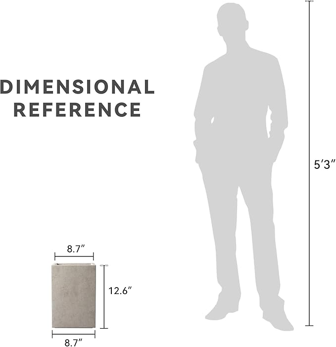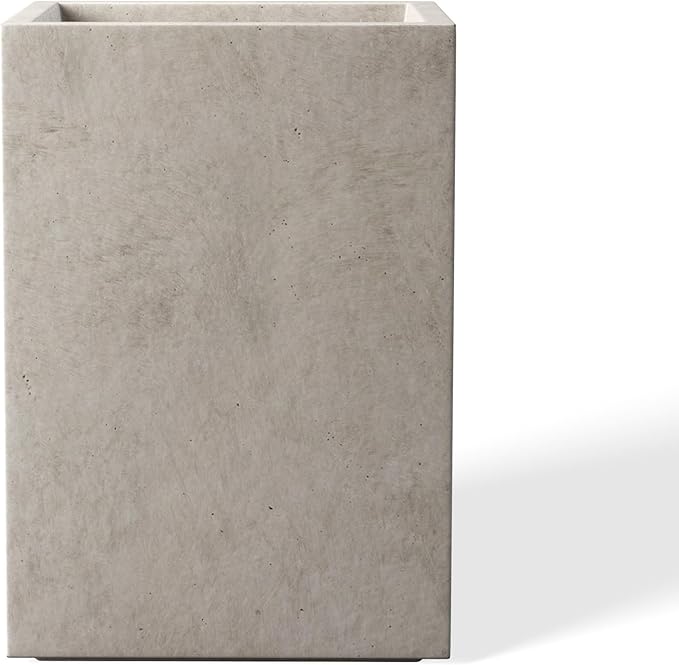 Kante 12.6" H Tall Rectangular Concrete Planters, Outdoor Indoor Lightweight Plant Pots with Drainage Hole and Rubber Plug, Modern Style for Home Garden Patio, Weathered Concrete