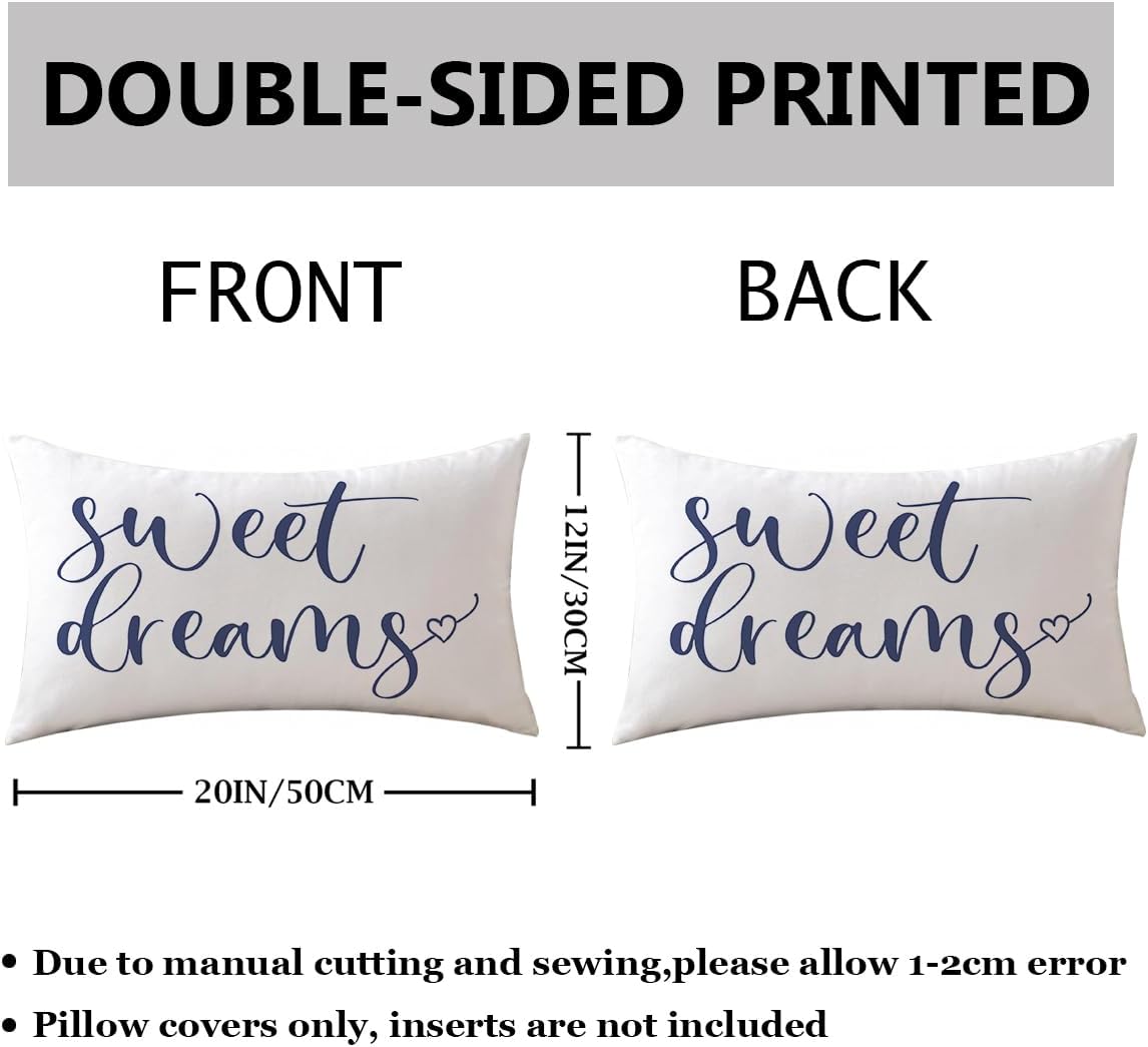 Bedding Decorative Lumbar Pillowcases Sweet Dreams Good Night Cushion Covers Sleep Themed Decorative Throw Pillow Covers 12''x20'',2Pack Super Soft for Bedroom Guest Room Housewarming Gifts (Blue)