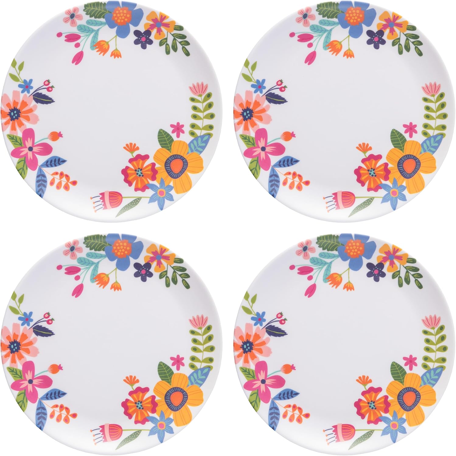 Karma, 7.75 inches Melamine Dessert Plates Set of 4, Reusable Dishwasher Safe Plates for Outdoor and Indoor, Shelly Floral