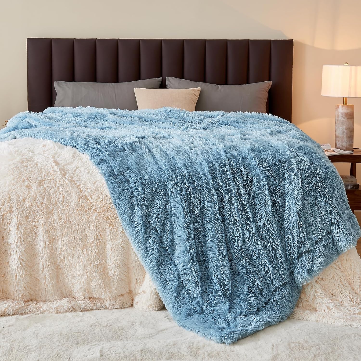 GONAAP Fuzzy Faux Fur Throw Blanket Twin Size Light Blue Super Soft Cozy Plush Fuzzy Shaggy Blanket for Couch Sofa Bed (Light Blue, Twin(60"x80"))