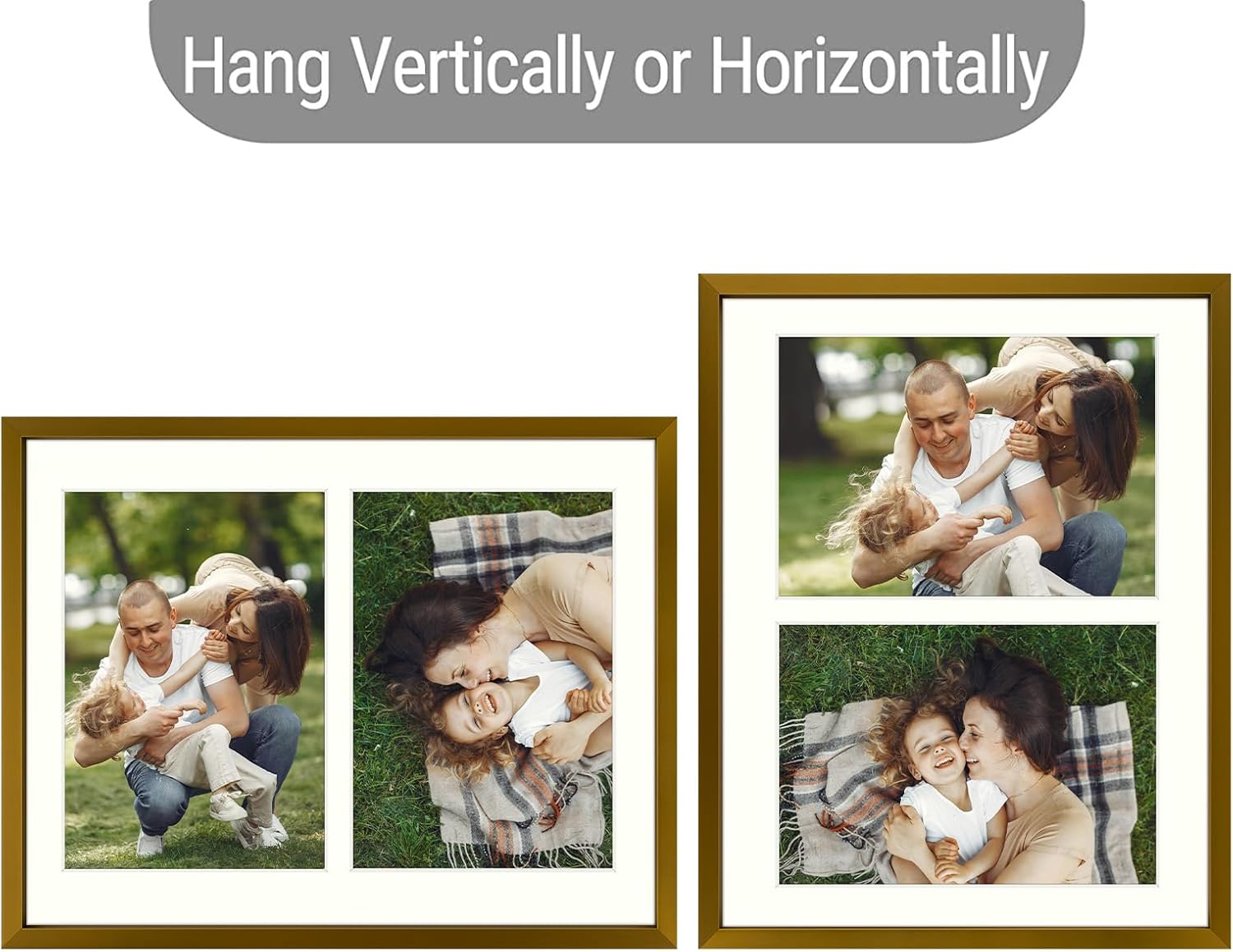Frametory - 8.5x11 Aluminum Collage Picture Frame - Display 5x7 Pictures with 2 Openings Mat - Real Glass Front - With Easel Stand for Horizontal/Vertical Wall Mount - Bronze 1 Pack