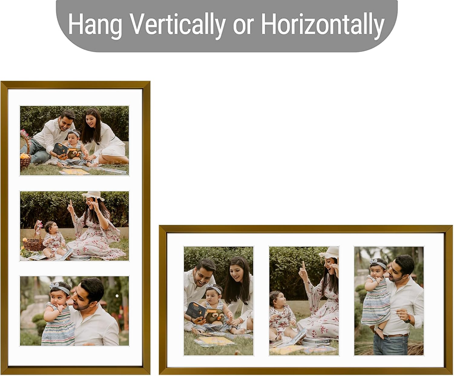 - Mounting: This 3 in One Collage picture frame has 2 sturdy hooks at the back for optional vertical and horizontal hanging or mounting on the wall to display every moments of your family, friends, pets, scenery, vacation, etc