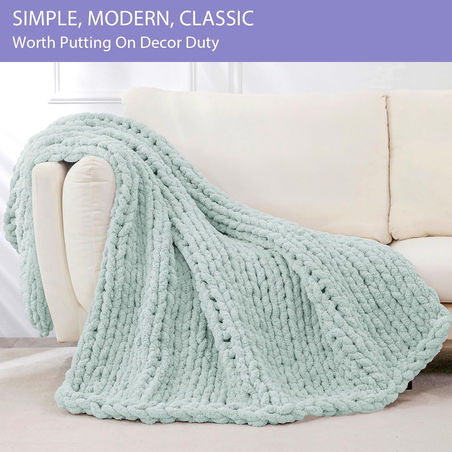- No Shedding, No Stiffness, No Prickly: Our soft thick blankets and throws are knitted with premium chenille yarn to prevent shedding and stiffness, on chilly days, wrap you and your loved ones in the chunky blanket and enjoy this cuddly throw together