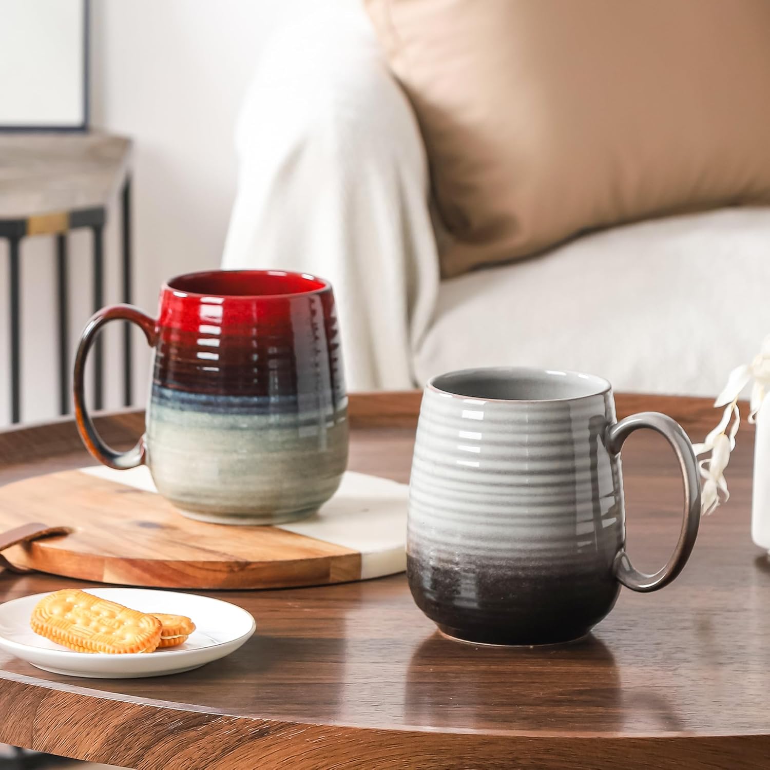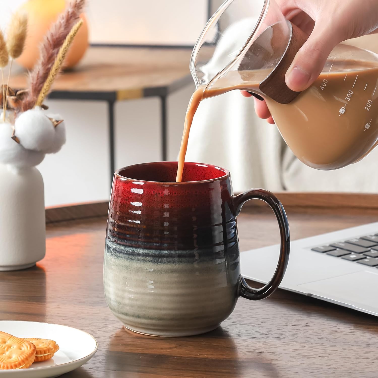 Large Coffee Mugs, Extra Large Ceramic Coffee Mug, 23 oz Handmade Pottery Mug, Big Tea Cups with Handle for Office and Home, Dishwasher and Microwave Safe (Ink Red)