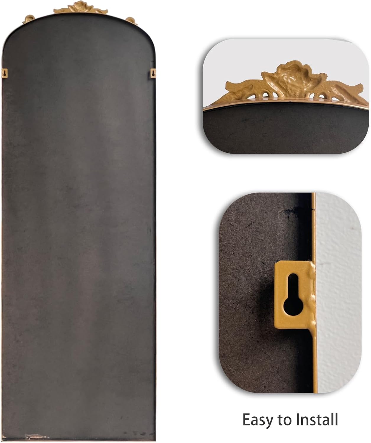 Large Gold Antique Mirror, Tall Arched Floor Mirror,Ornate Design Vintage Wall Mirror Decor for Entryway,Hallway,Living Room,Fireplace 18"X53"