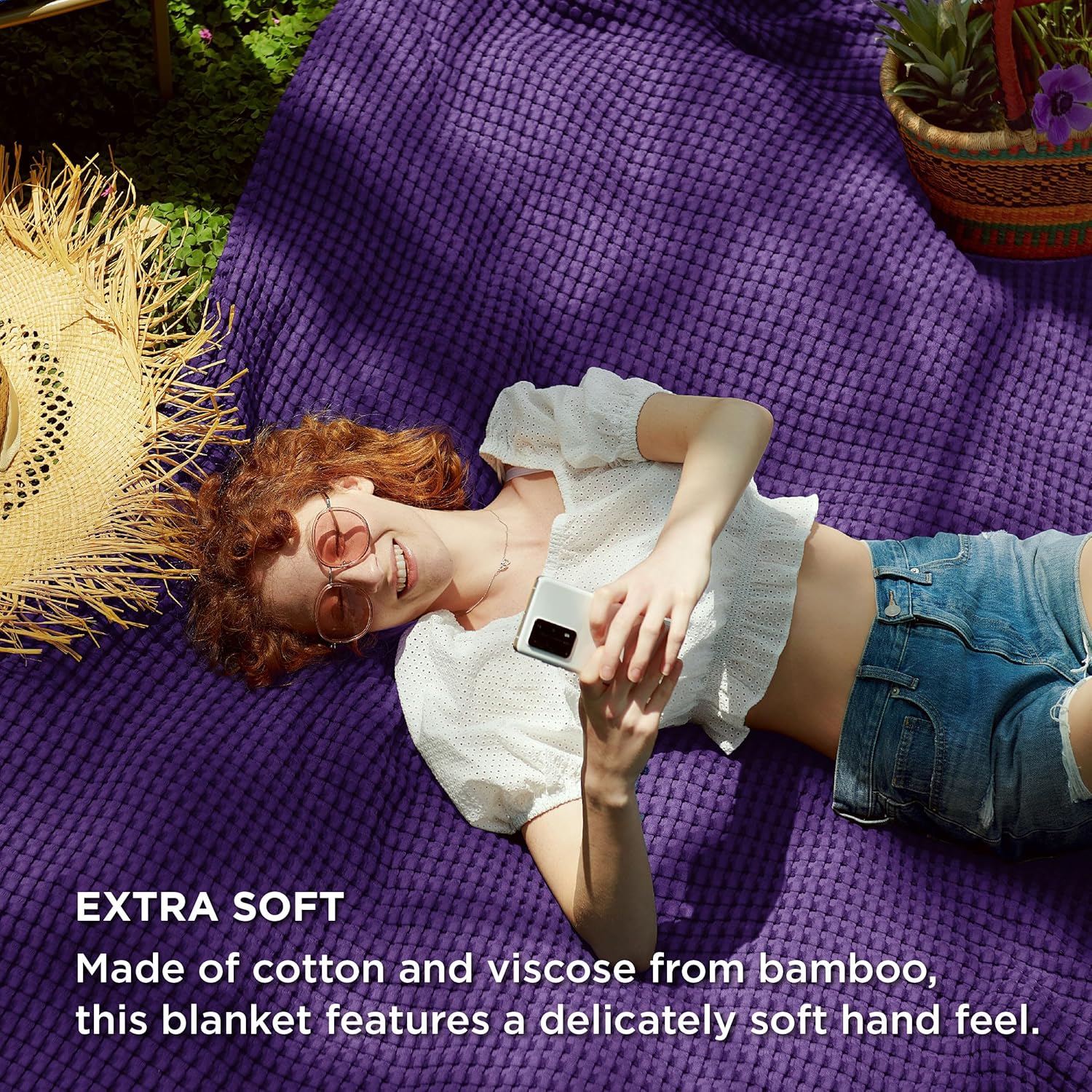 Bedsure Cooling Cotton Waffle Oversized King Blanket - Lightweight Breathable Rayon Derived from Bamboo for Hot Sleepers, Luxury Throws for Bed and Sofa, Purple, 120x96 Inches