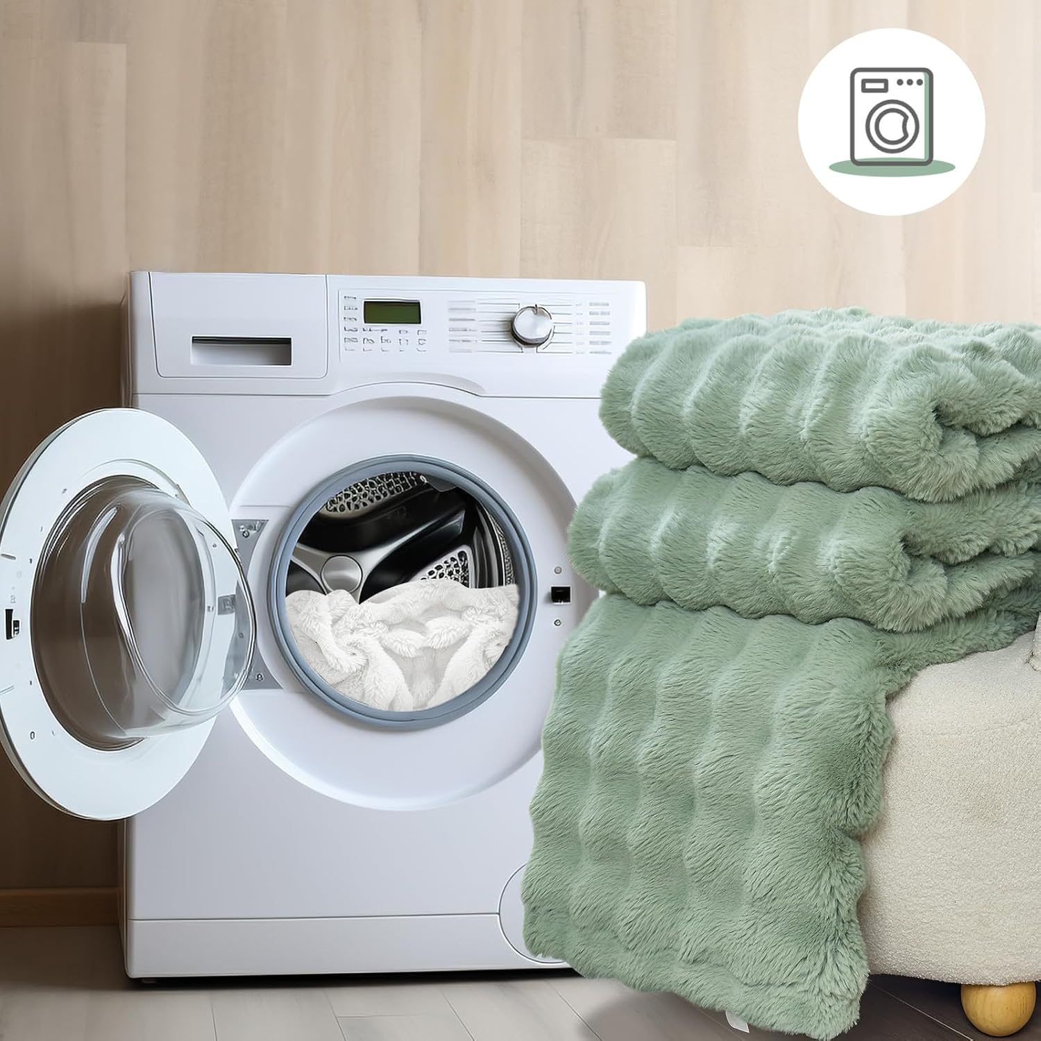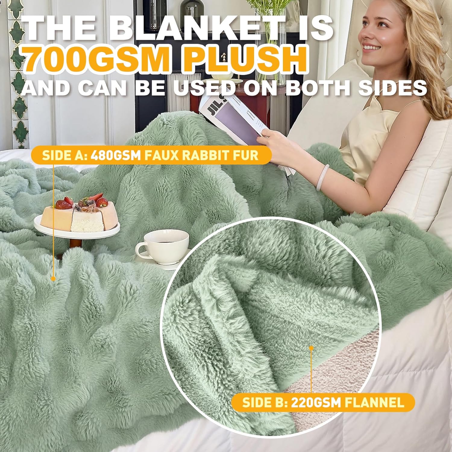 Faux Fur Sage Green Throw Blanket for Couch - Super Soft Heavy Flufyy Thick Bubble Throw Blankets for Bed Bedroom Living Room Farmhouse Sofa Chair Fall Winter Warm, 50x60 Inch
