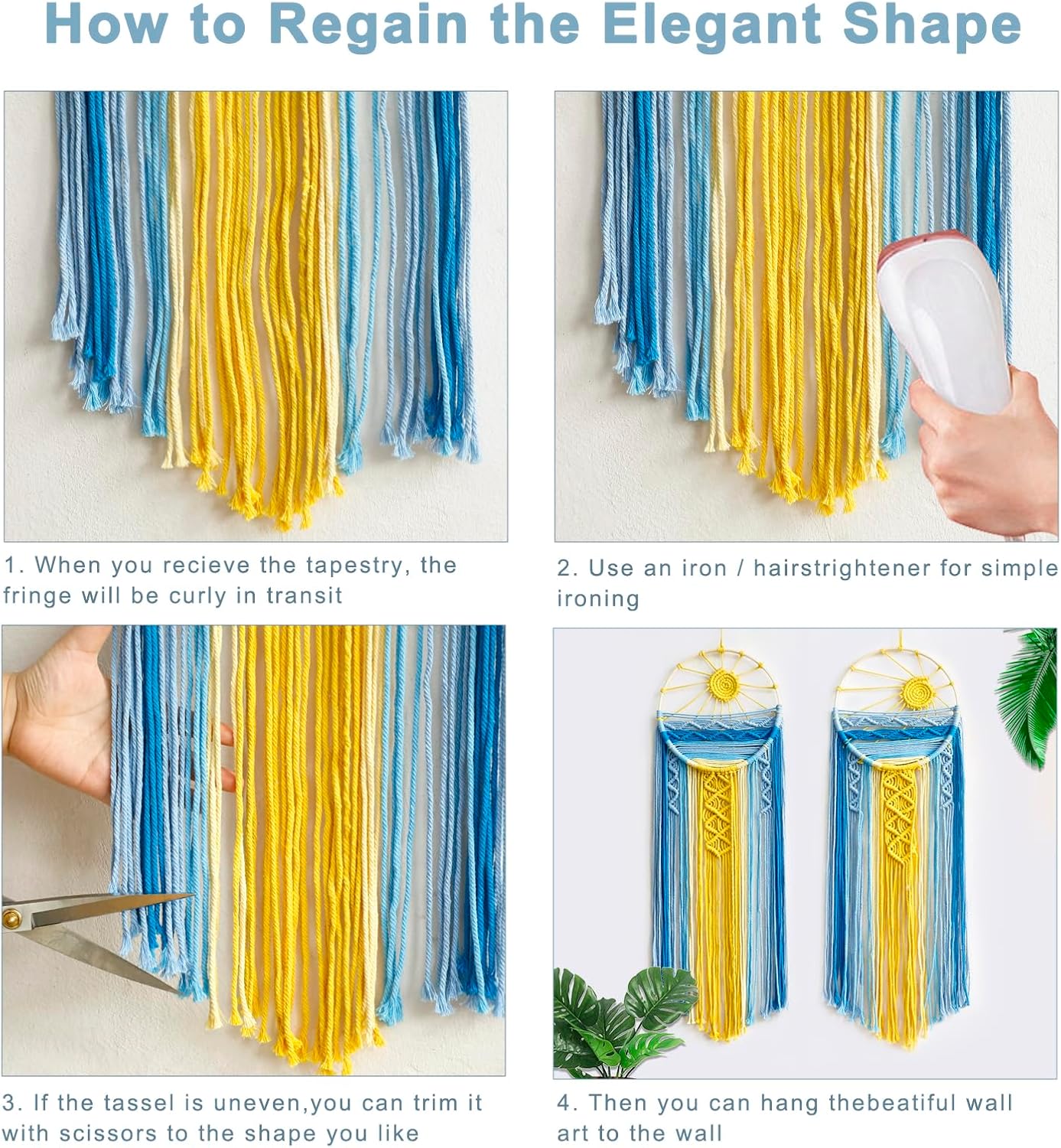 - NOTE & SERVICE - When you recieve the big dreamcatcher, the fringe may be curly during transport, please use an iron or hair straightener for simple ironing, you can also trim it to the shape you like. We offer the quick response service, If you have any questions before or after the purchase, please feel free to reach out. Enjoy your life with this product now