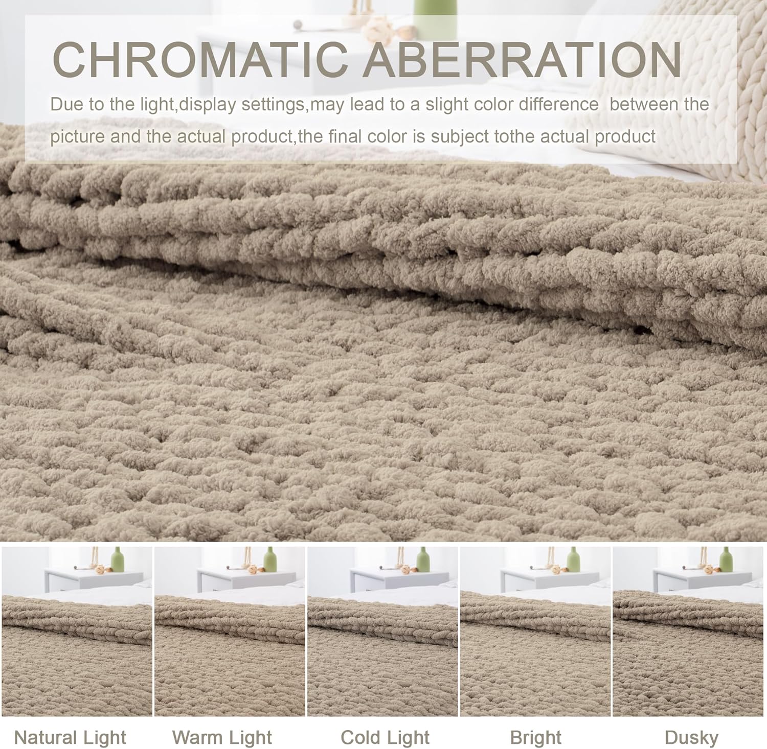 Chunky Knit Throw Blanket 60"X 80", 100% Handmade with Soft Chenille Yarn, 6.7lbs Thick Cable Knitted Blankets, Large Rope Knot Crochet Throws for Couch Sofa Bed Home Decor, Taupe