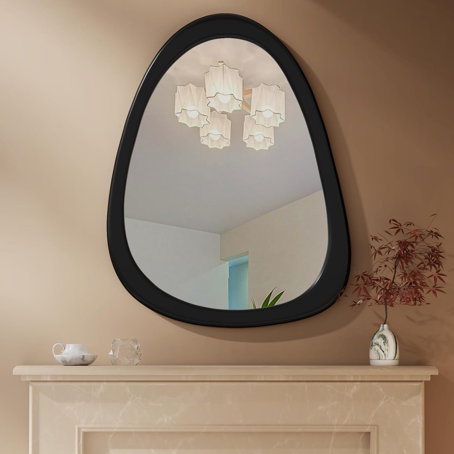 COOL2DAY Irregular Mirror,Asymmetrical Wood Wall Frame Mirror,Abstract Assymetrical Decorative Black Odd Shaped Mid Century Mirrors for Living Room Bedroom Entryway Bathroom Home Decor