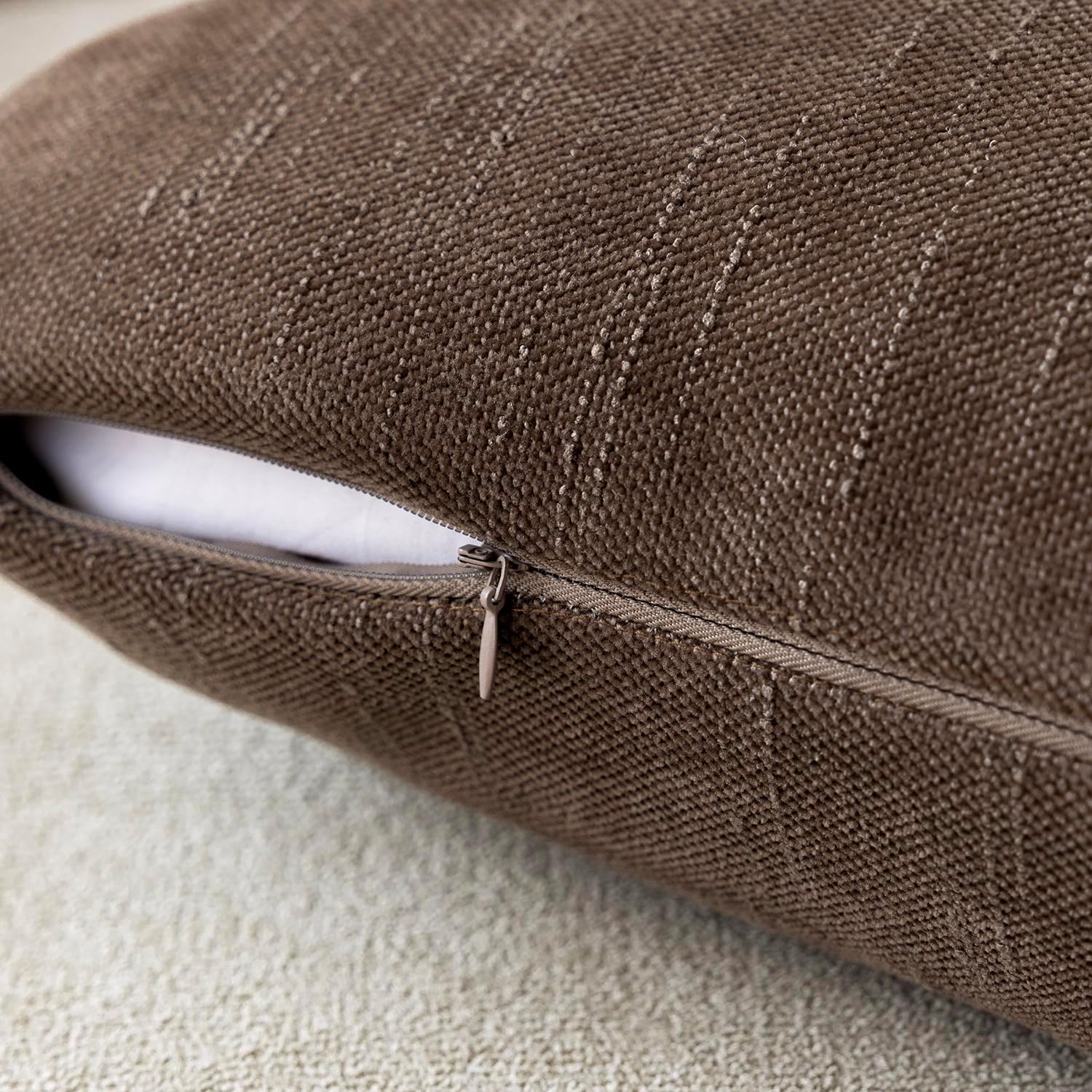 Foindtower Set of 2 Soft Textured Chenille Throw Decorative Pillow Covers Square Accent Solid Cushion Cover Cozy Neutral Farmhouse Pillow Case for Couch Sofa Bedroom Living Room 26x26 Inch, Chocolate