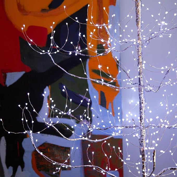 - [ 4’ SILVER FAIRY LIGHT TREE with COOL WHITE LED LIGHTS ] 4-foot silver fairy light tree with 390 cool white LED fairy lights sprinkled through the branches. 15-foot transparent low voltage power cord with 5 volt male plug for convenient connection to power. Powered by STANDARD 120 VOLT household outlet.