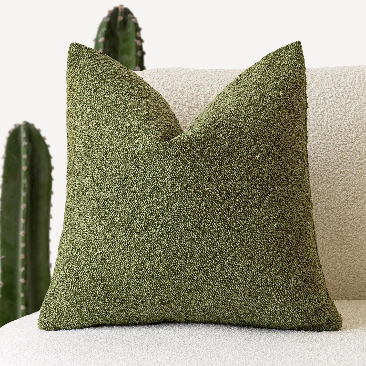 Foindtower Decorative Textured Boucle Throw Pillow Covers Accent Solid Pillow Cases Neutral Soft Cozy Couch Cushion Case for Chair Sofa Bedroom Living Room Home Decor 26 x 26 Inch,Green