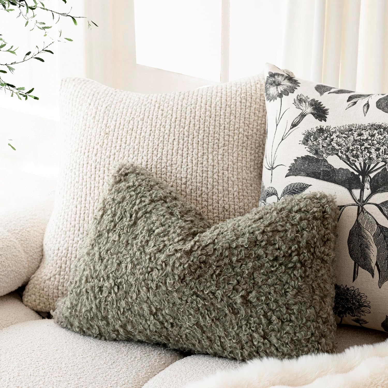 Foindtower Set of 2 Curly Teddy Wool Pillow Covers Decorative Boucle Textured Lumbar Throw Pillow Faux Fur Pillowcases Sheepskin Cushion Case for Sofa Bedroom Car 12"x20" Sage Green