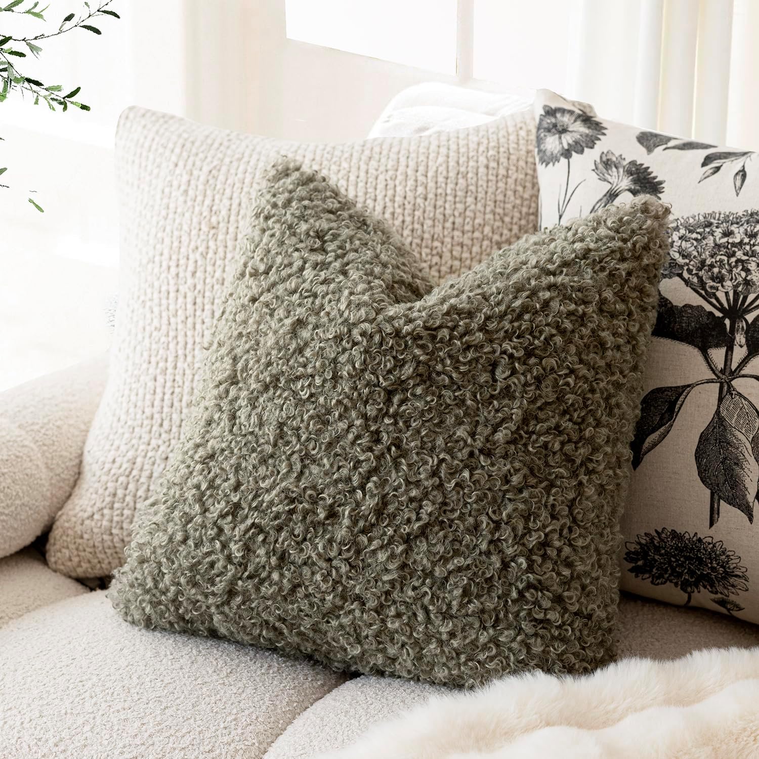 - The shearling pillow cover was designed for a tight curly texture, soft, plush and cozy, offering all the warmth and comfort in winter.